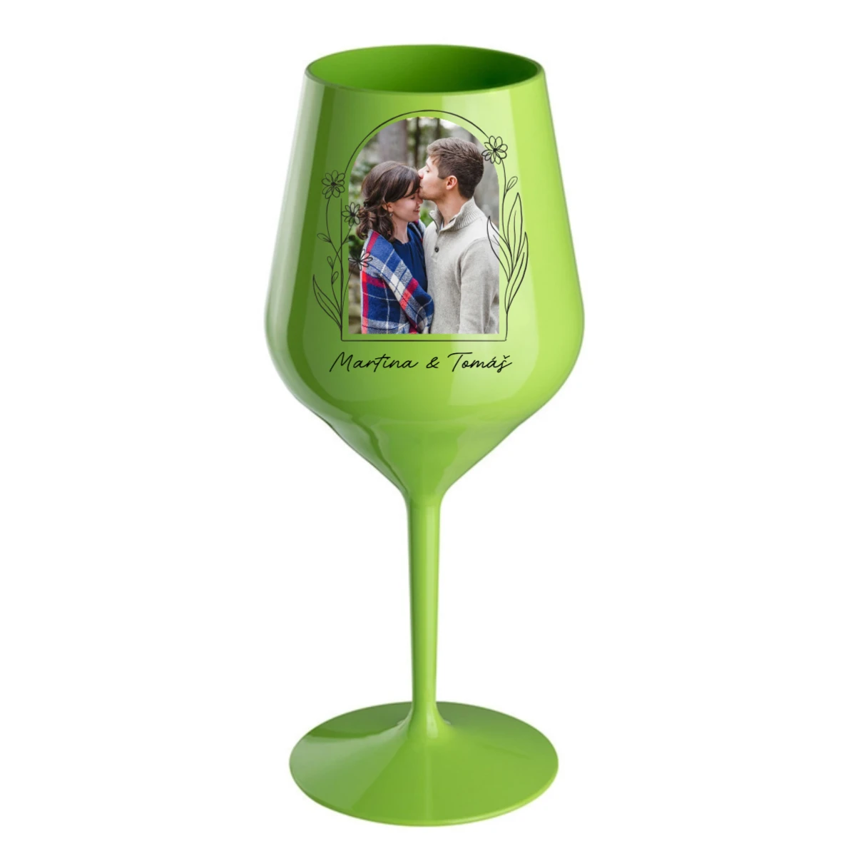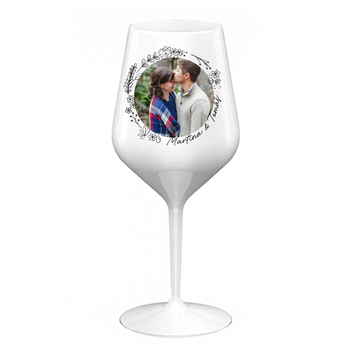 Personalizovaná nerozbitná sklenice s květinový ohraničením