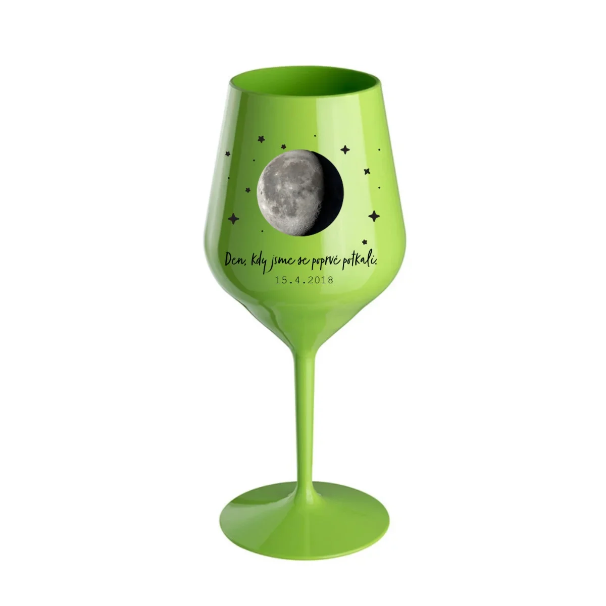 Uchovejte si důležitý okamžik navždy — na své vlastní nerozbitné sklenici! Vyberte si datum, které pro Vás něco znamená – první polibek, narození dítěte, výročí nebo jiný výjimečný den – a my na sklenici vyobrazíme přesnou fázi Měsíce, jaká byla právě tehdy na obloze.
