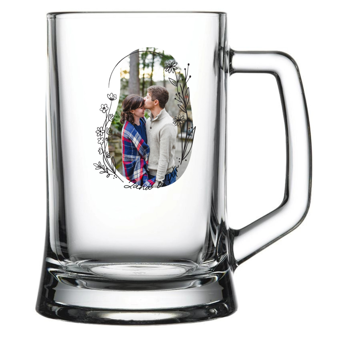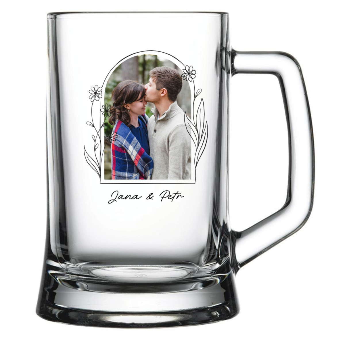 Personalizovaná pivní sklenice s květinovým ohraničením