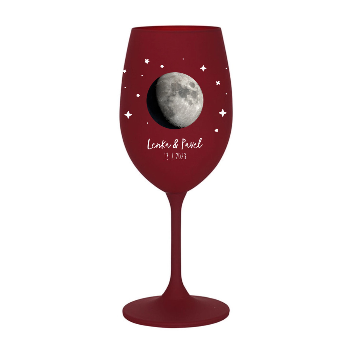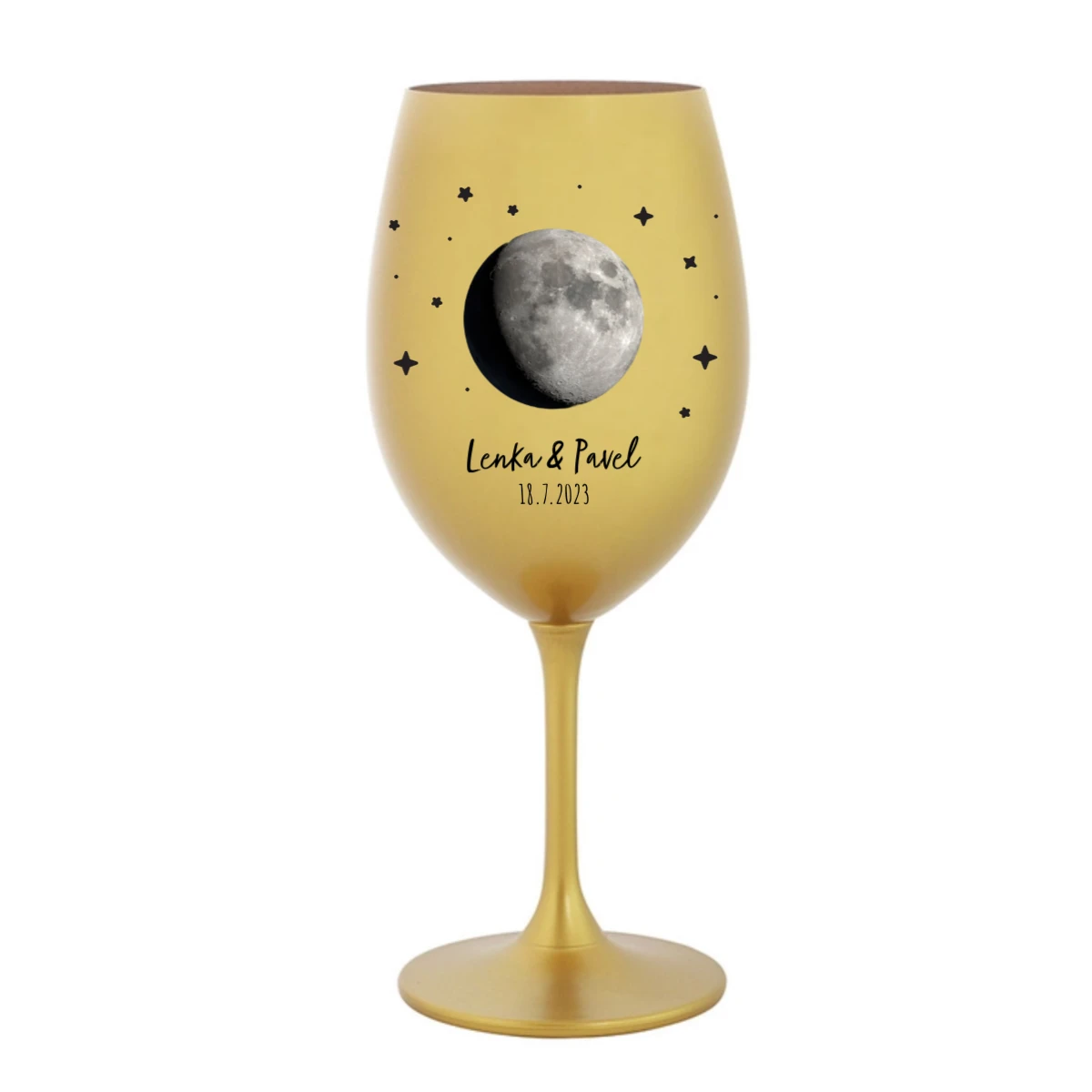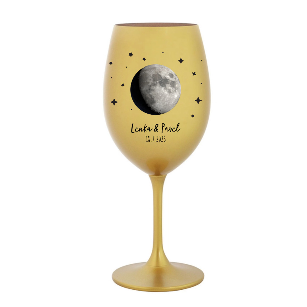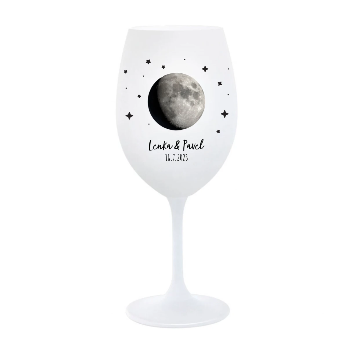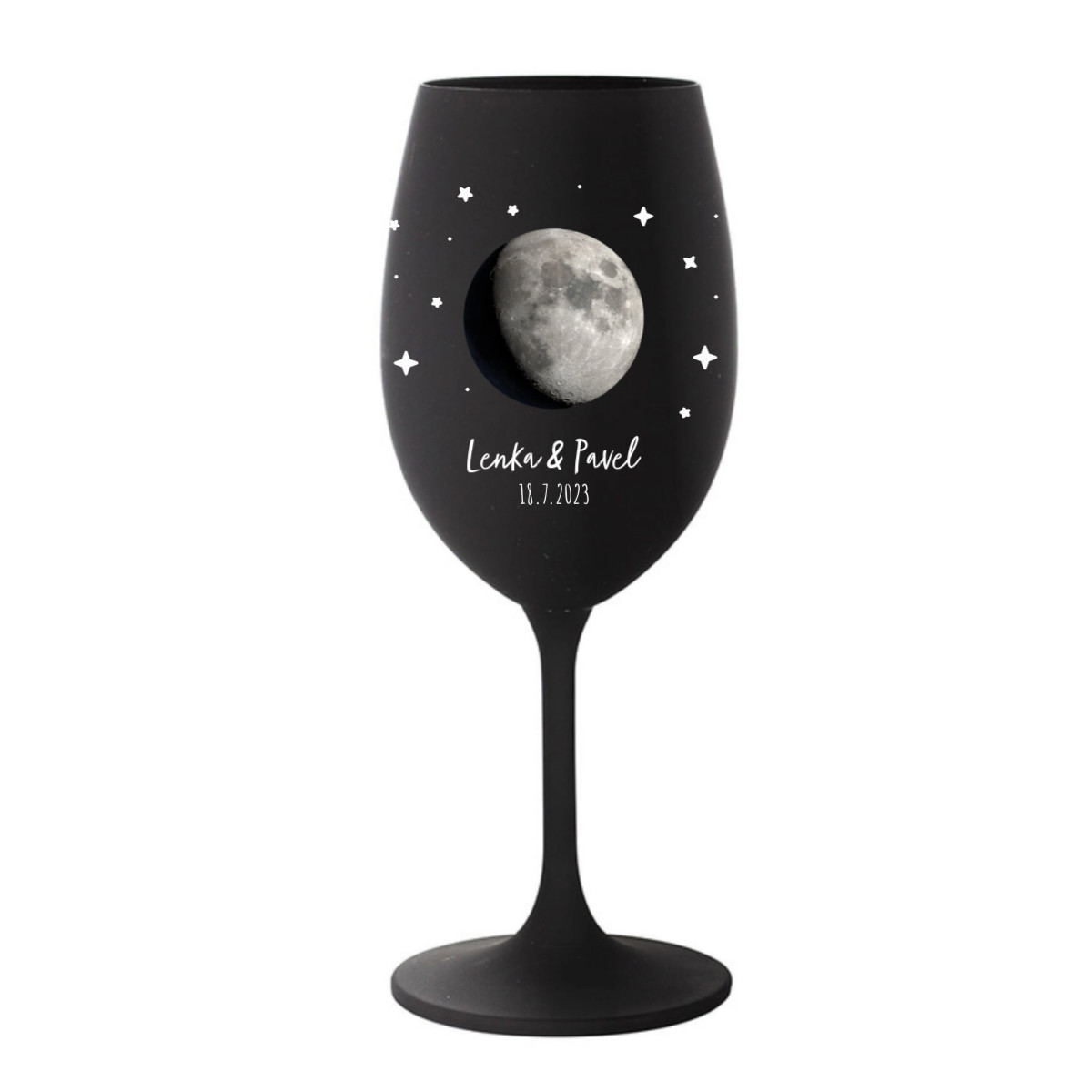Uchovejte si důležitý okamžik navždy — na své vlastní sklenici! Vyberte si datum, které pro Vás něco znamená – první polibek, narození dítěte, výročí nebo jiný výjimečný den – a my na sklenici vyobrazíme přesnou fázi Měsíce, jaká byla právě tehdy na obloze.