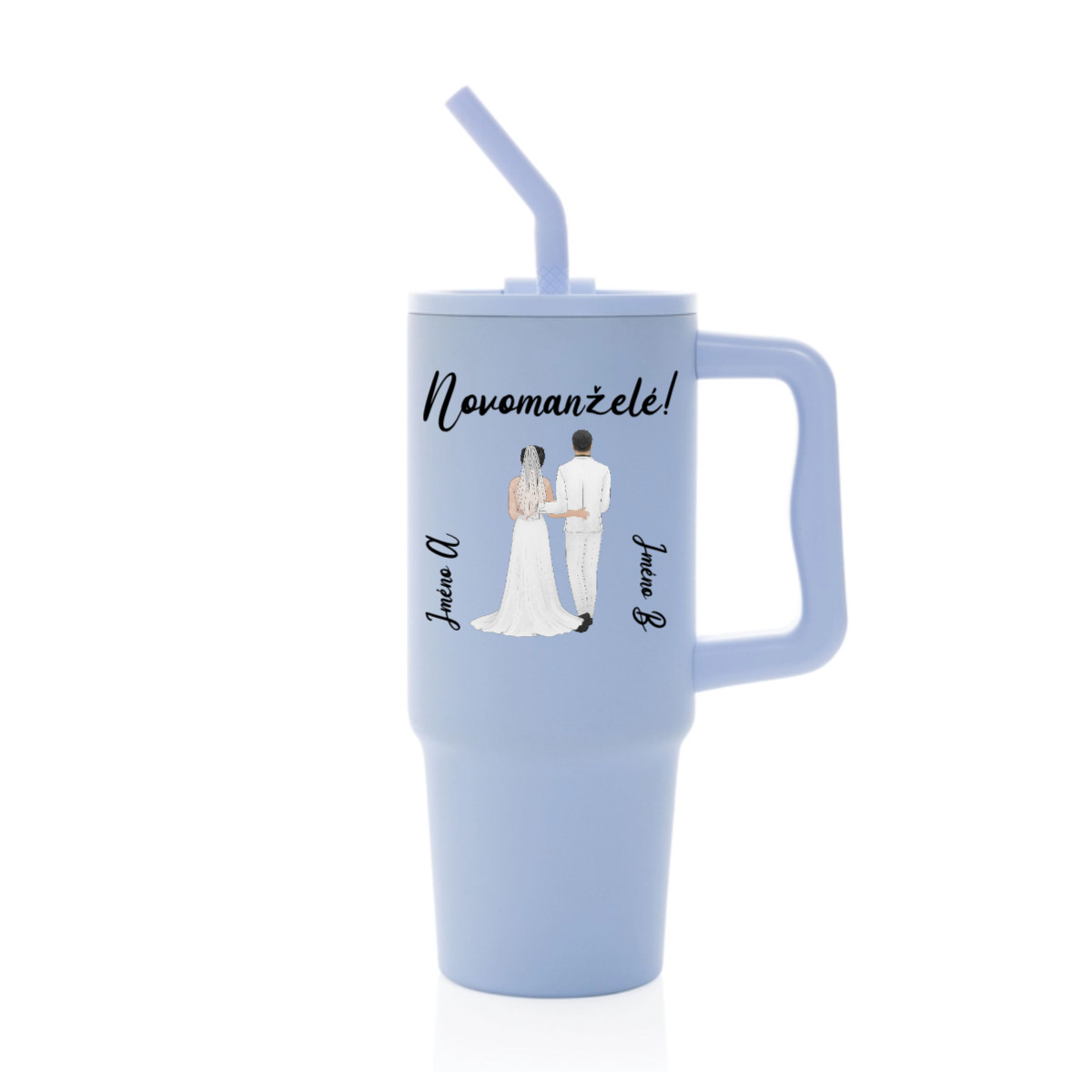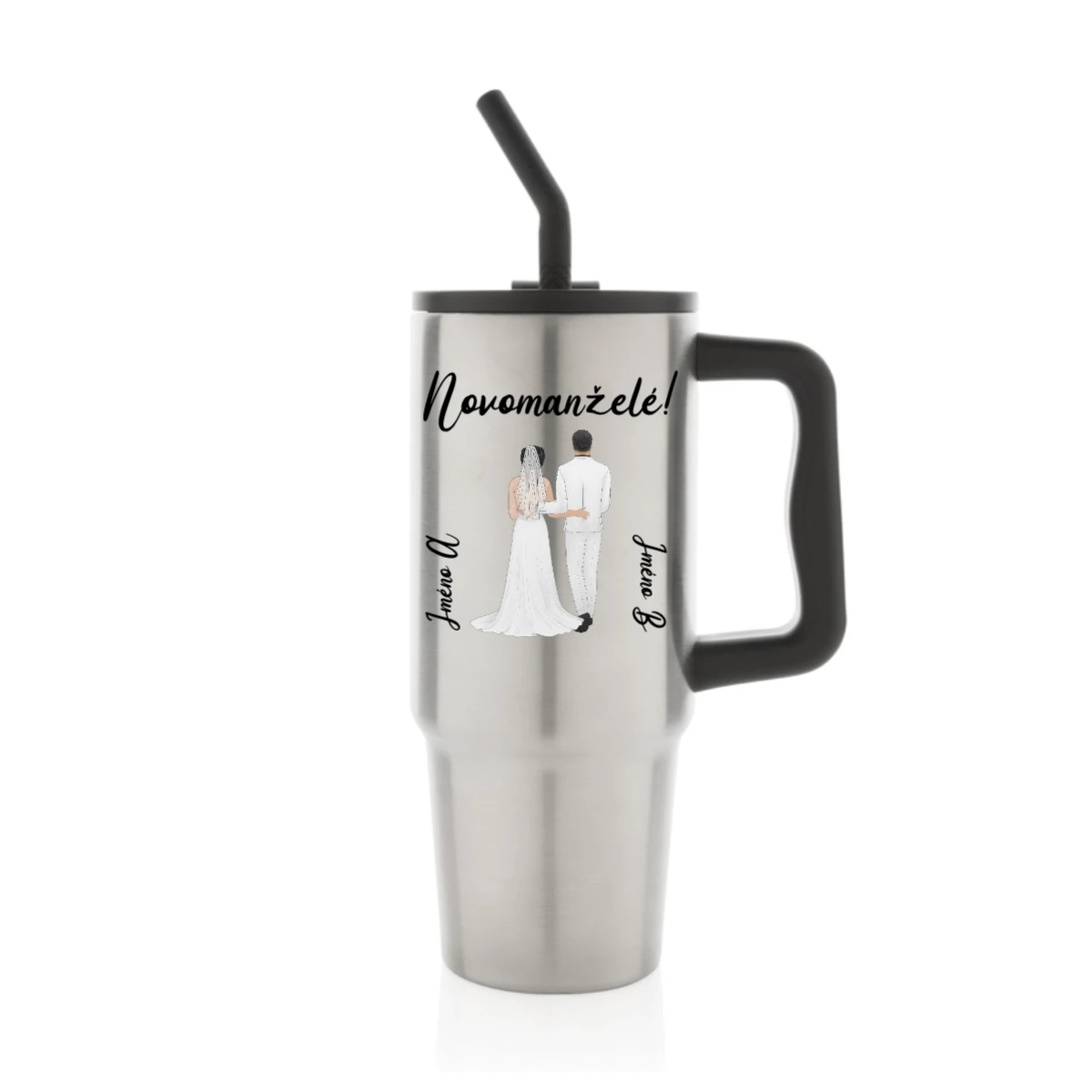 Pro novomanžele, kteří chtějí mít svůj oblíbený nápoj i kousek sebe všude s sebou. Tento velký cestovní termohrnek o objemu 900 ml je ideální pro ranní kávu, osvěžující limonádu nebo romantický piknik ve dvou.