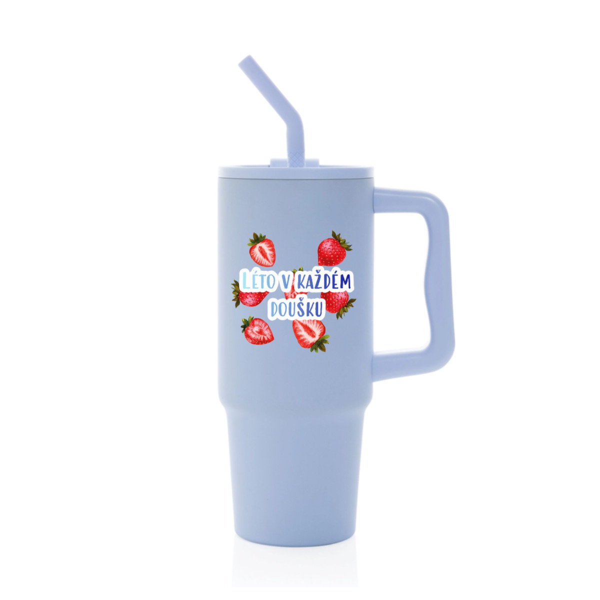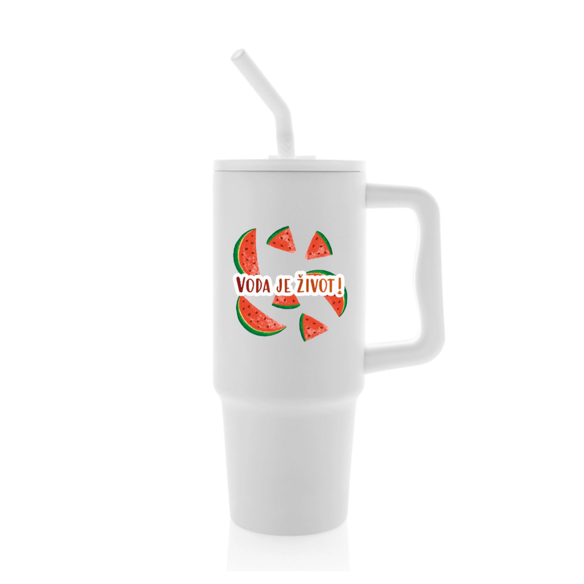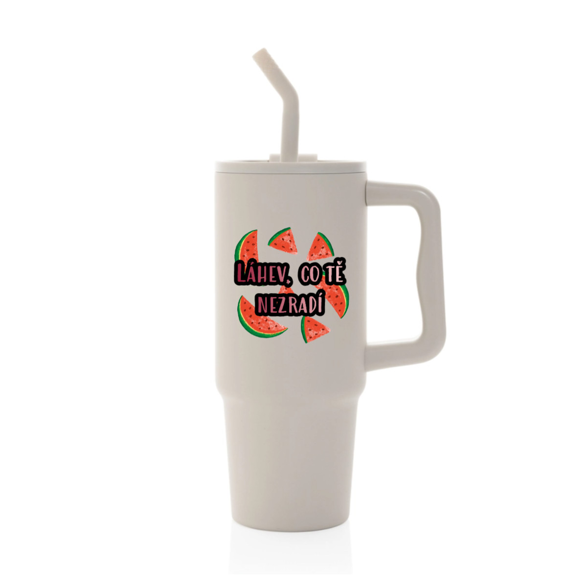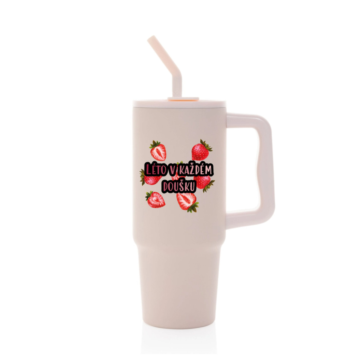 Velký cestovní termohrnek s brčkem a uchem – s vlastním motivem a textem