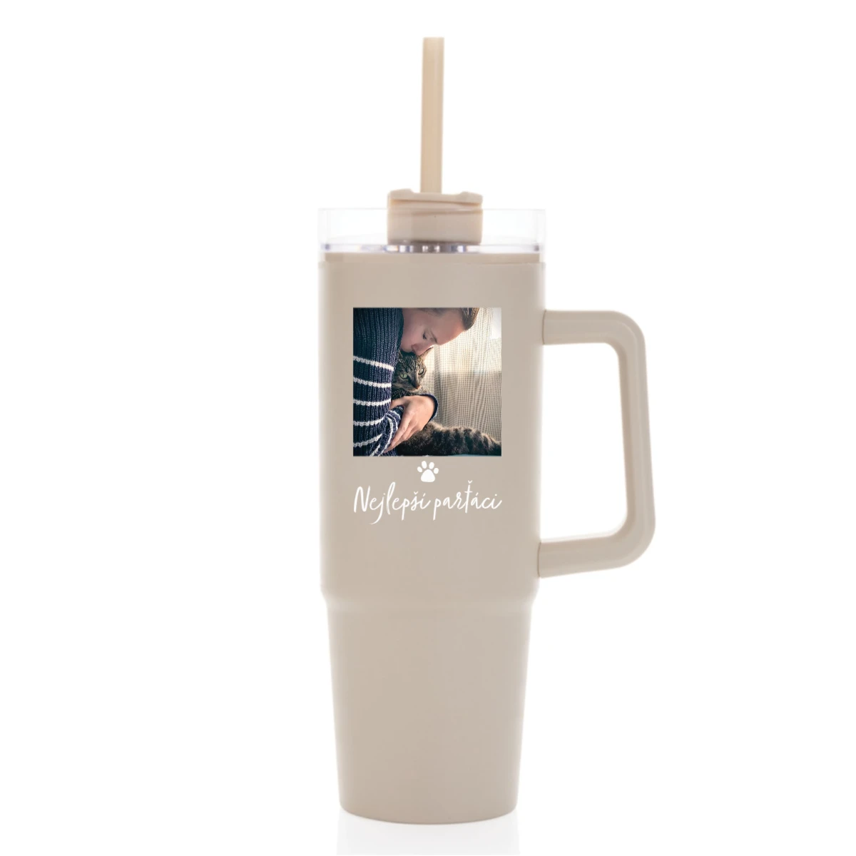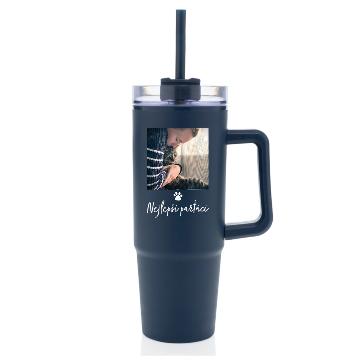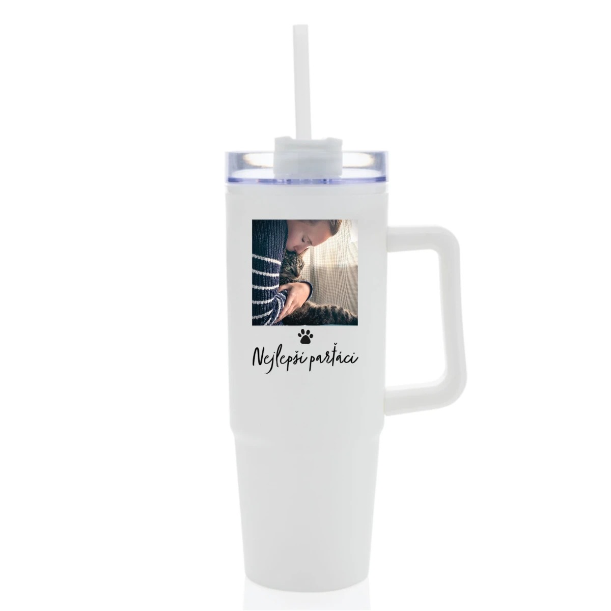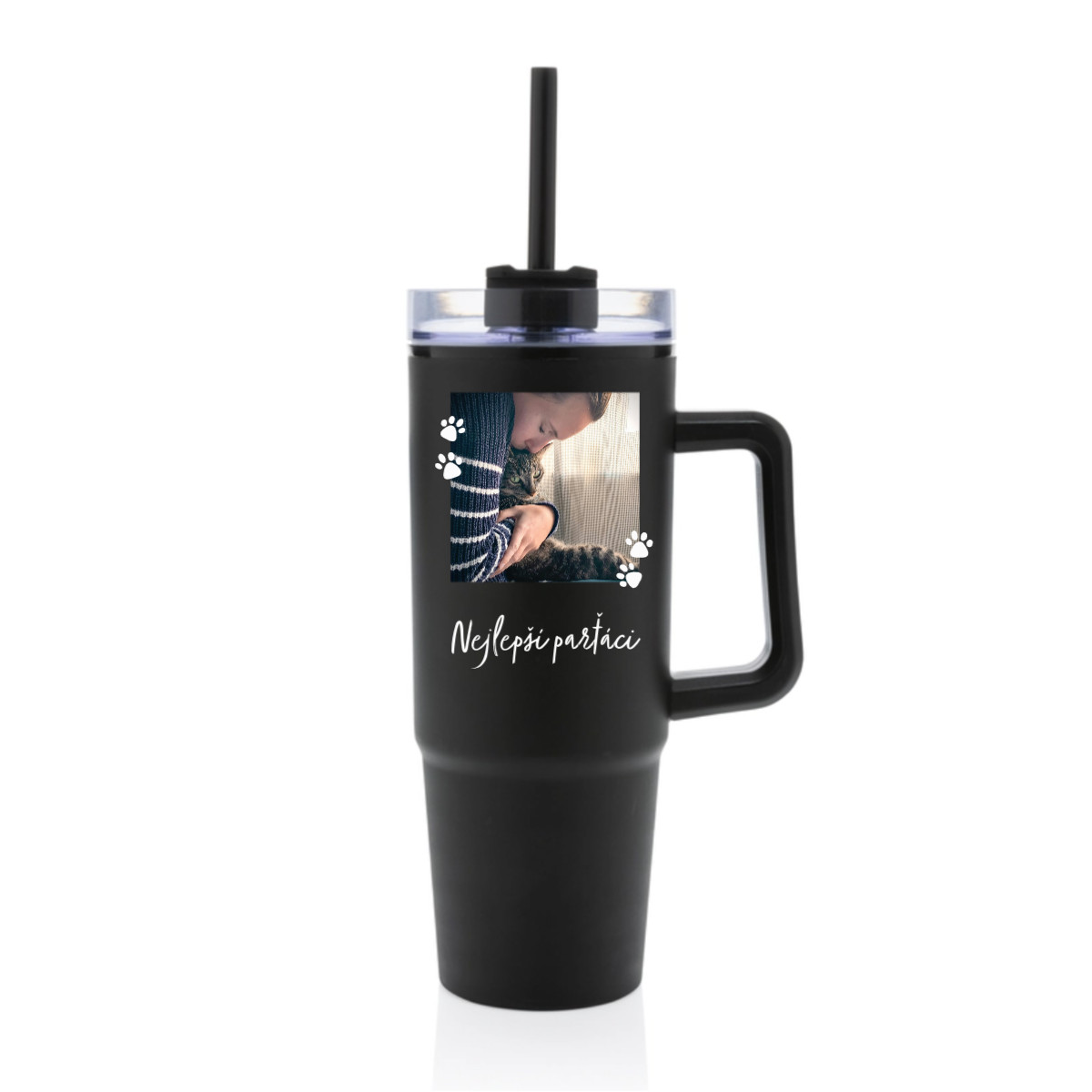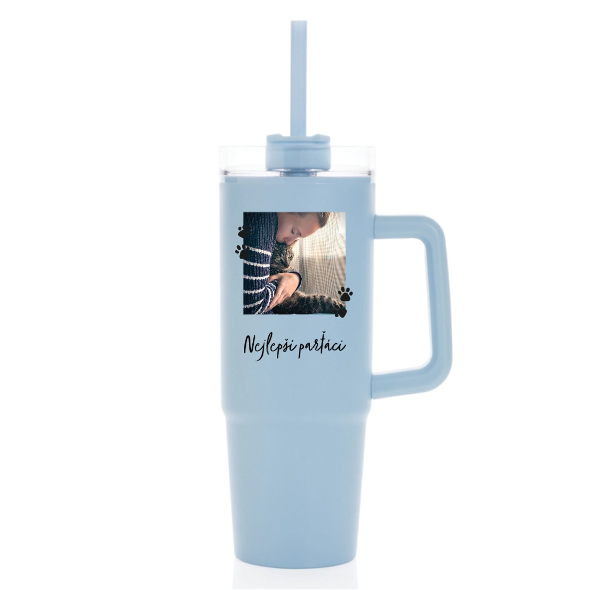 Personalizovaná cestovní termoska s uchem a brčkem (900 ml)