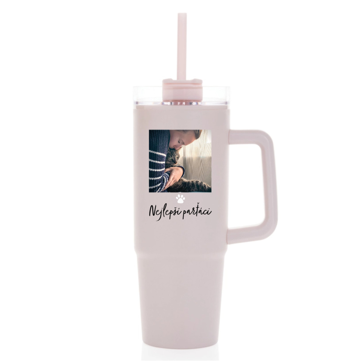 Personalizovaná termoska s průhledným víčkem - fotografie s mazlíčkem