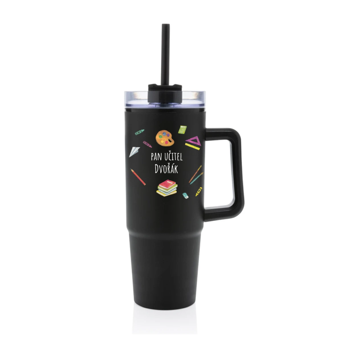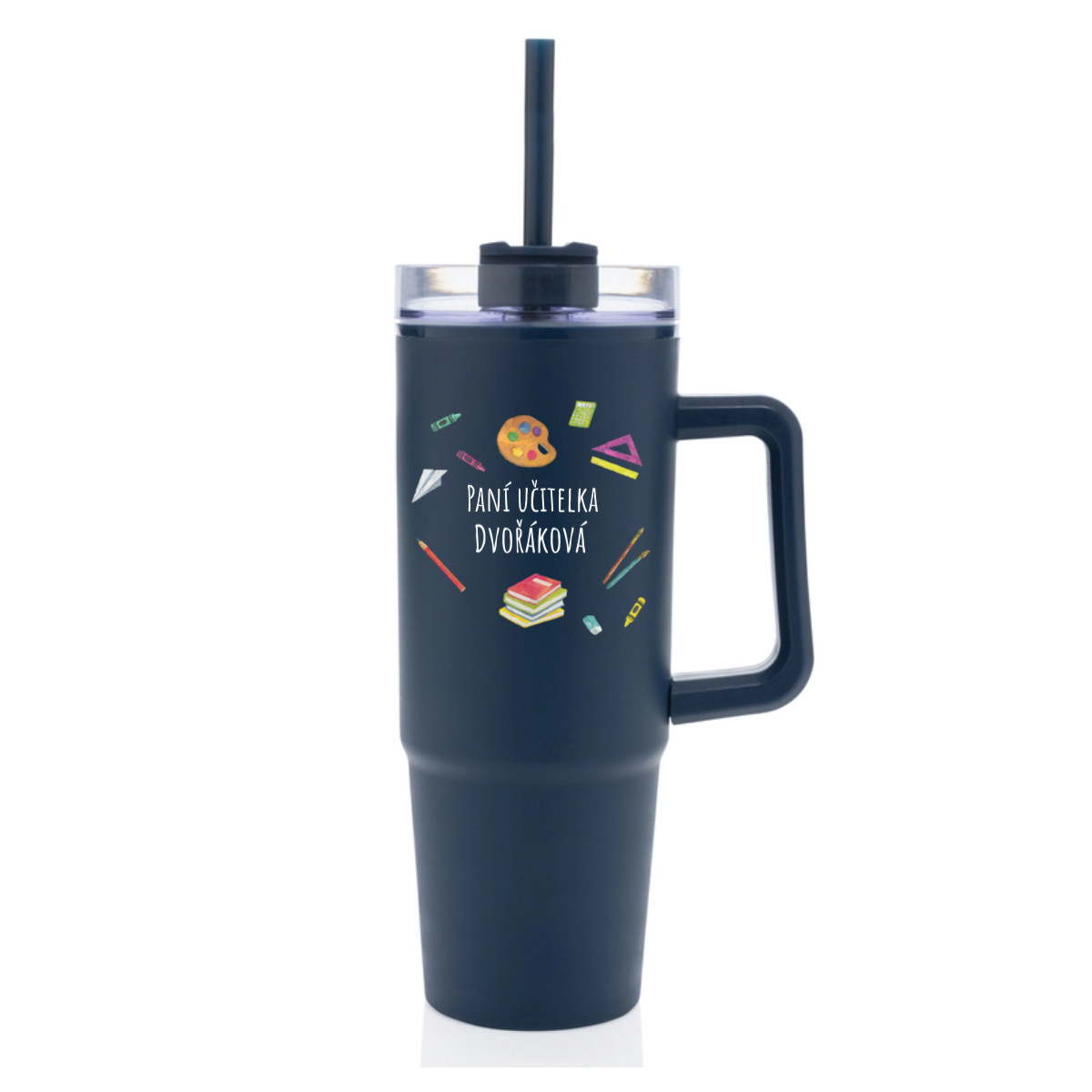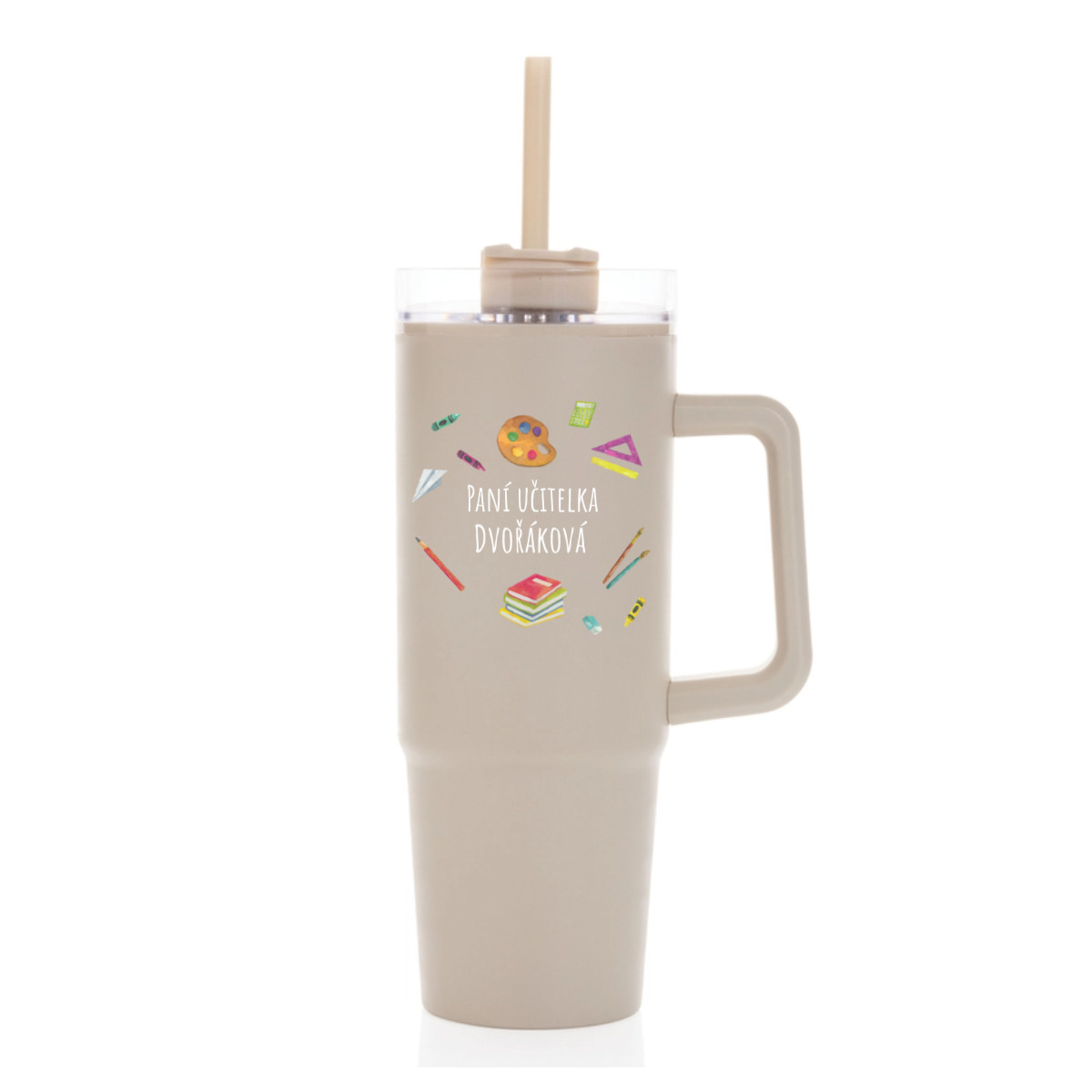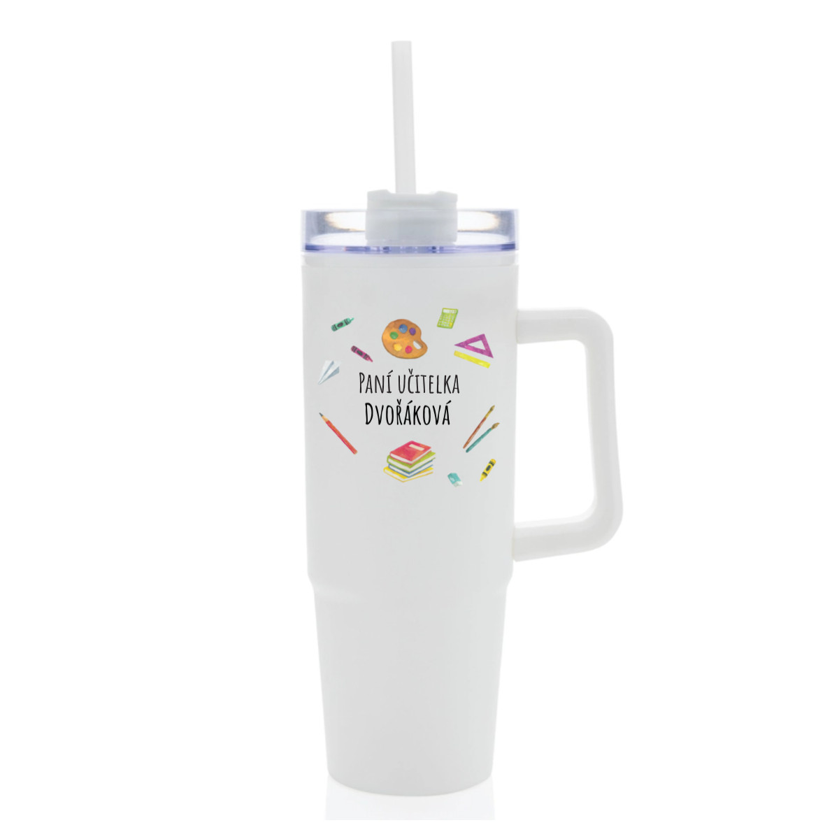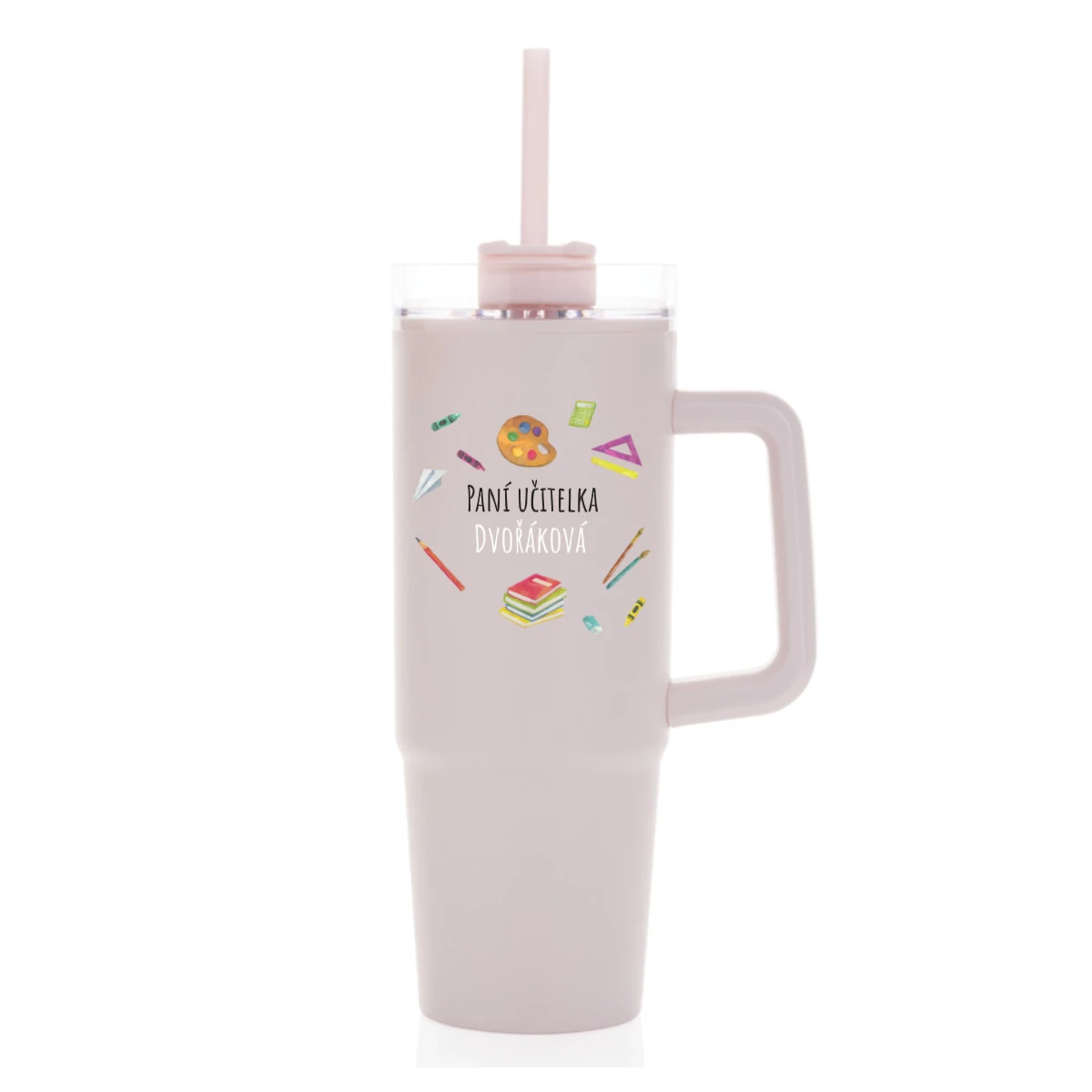 Personalizovaná termoska s průhledným víčkem pro paní učitelku/pana učitele (pomůcky)