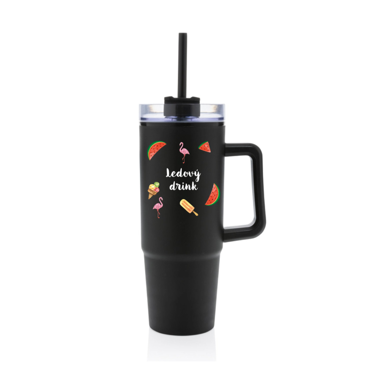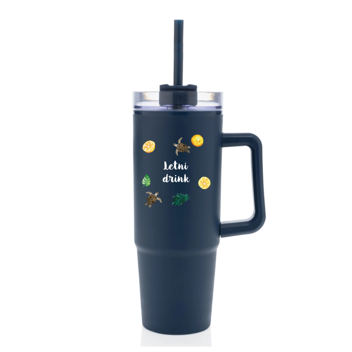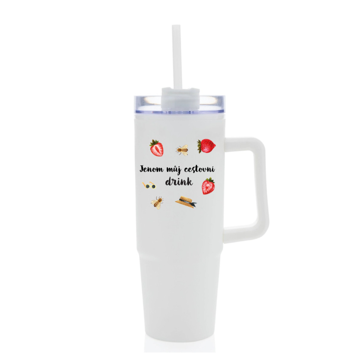 Hledáte pořádný hrnek, který udrží Váš nápoj v ideální teplotě a zároveň bude vypadat skvěle? Tento velkoobjemový cestovní hrnek o objemu 900 ml má vše, co potřebujete – praktické ucho pro snadné držení, slámku pro pohodlné popíjení a hlavně: letní design na míru přesně pro Vás!