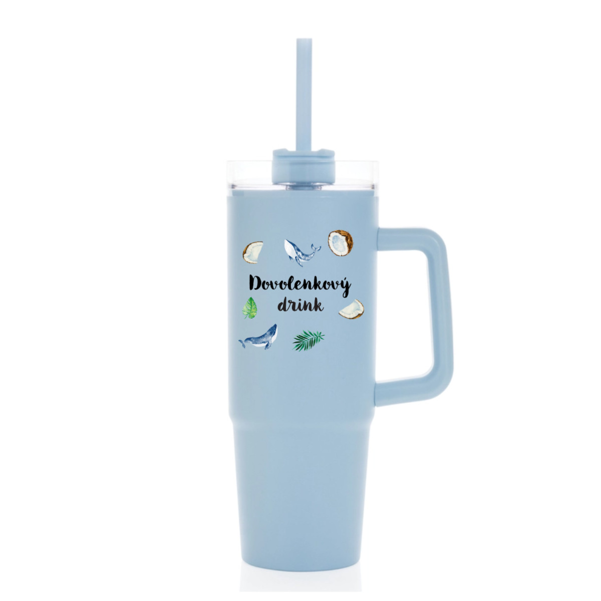 🌴 Velký letní cestovní hrnek se slámkou a uchem – 900 ml