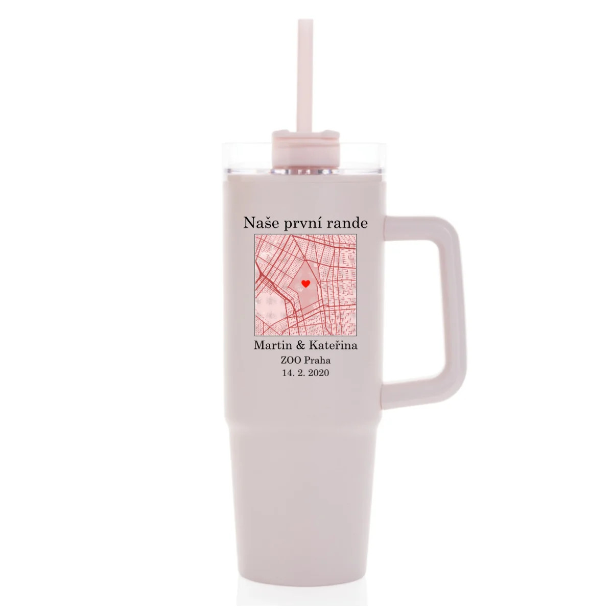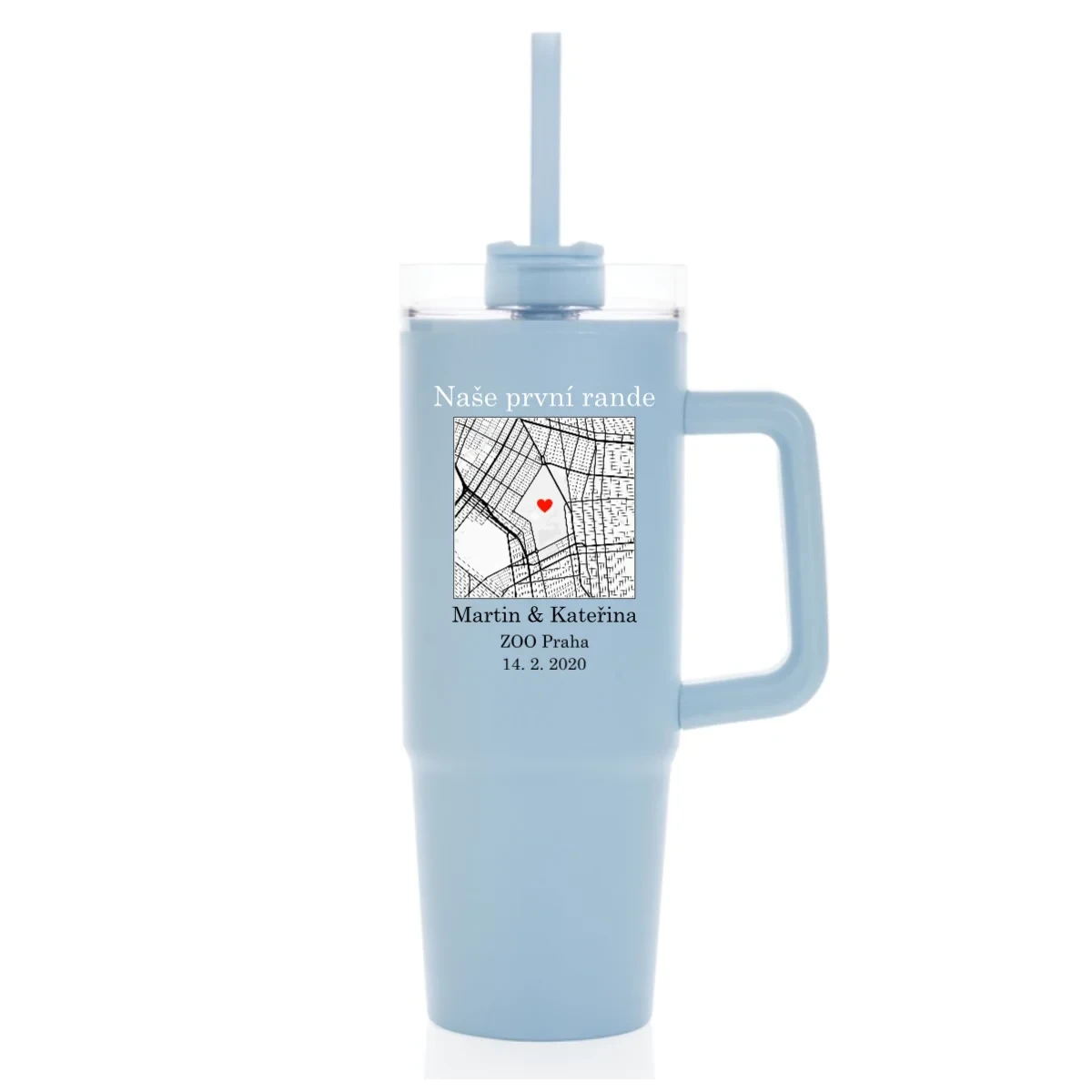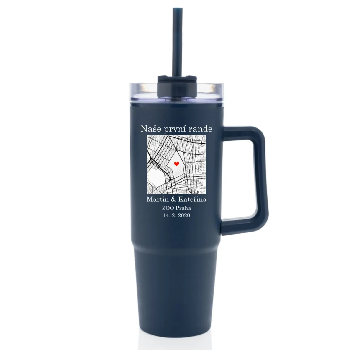 Hledáte originální dárek nebo něco, co bude opravdu Vaše? Tento velký cestovní hrnek (900 ml) spojuje praktičnost s emocemi. Vyberte si mapu místa, které má pro Vás zvláštní význam – třeba místo prvního rande, výletu snů nebo jiné vzpomínky. Na mapě označíte přesnou adresu, přidáte dvě jména a vlastní popisek – a vznikne jedinečný hrnek, který bude mluvit za Vás.