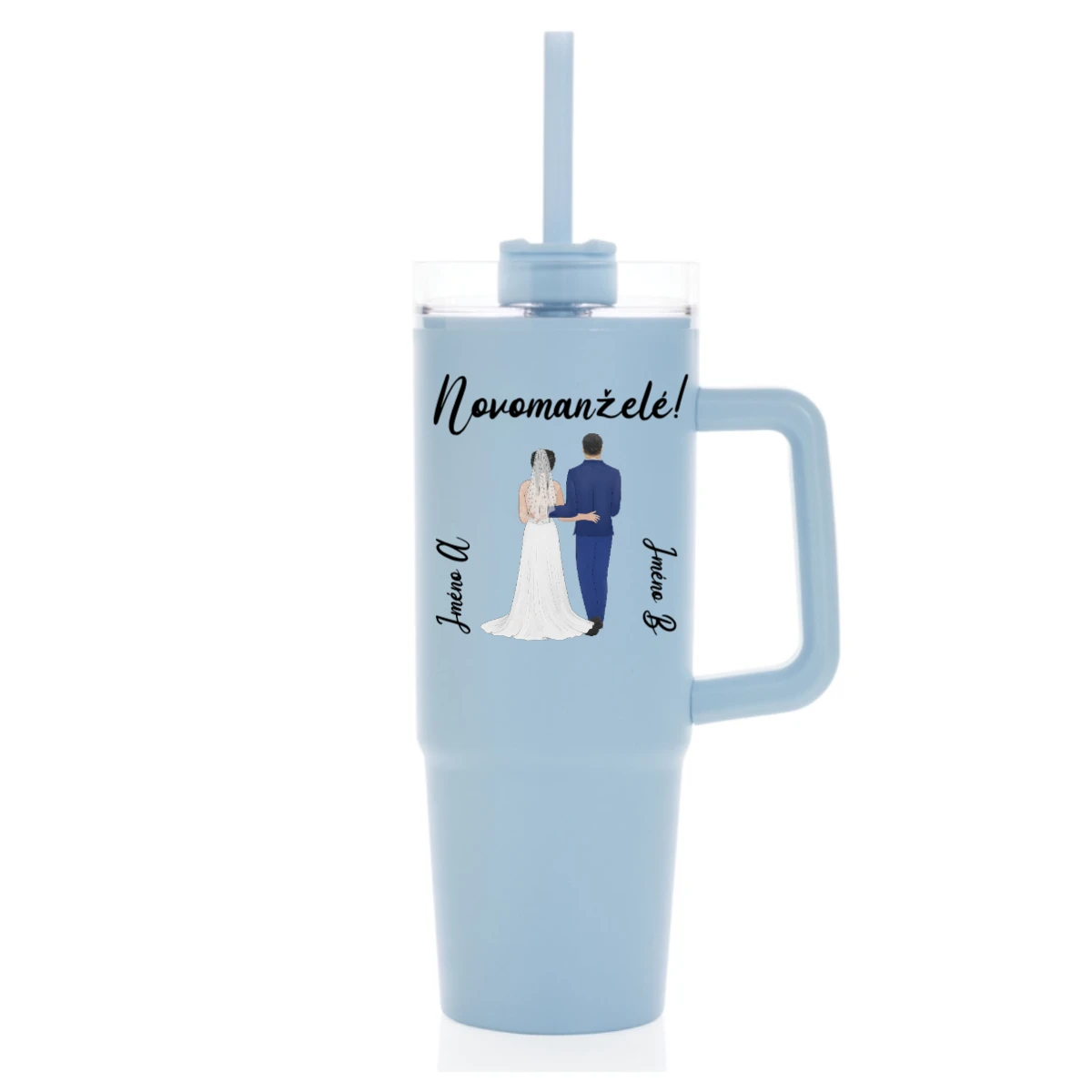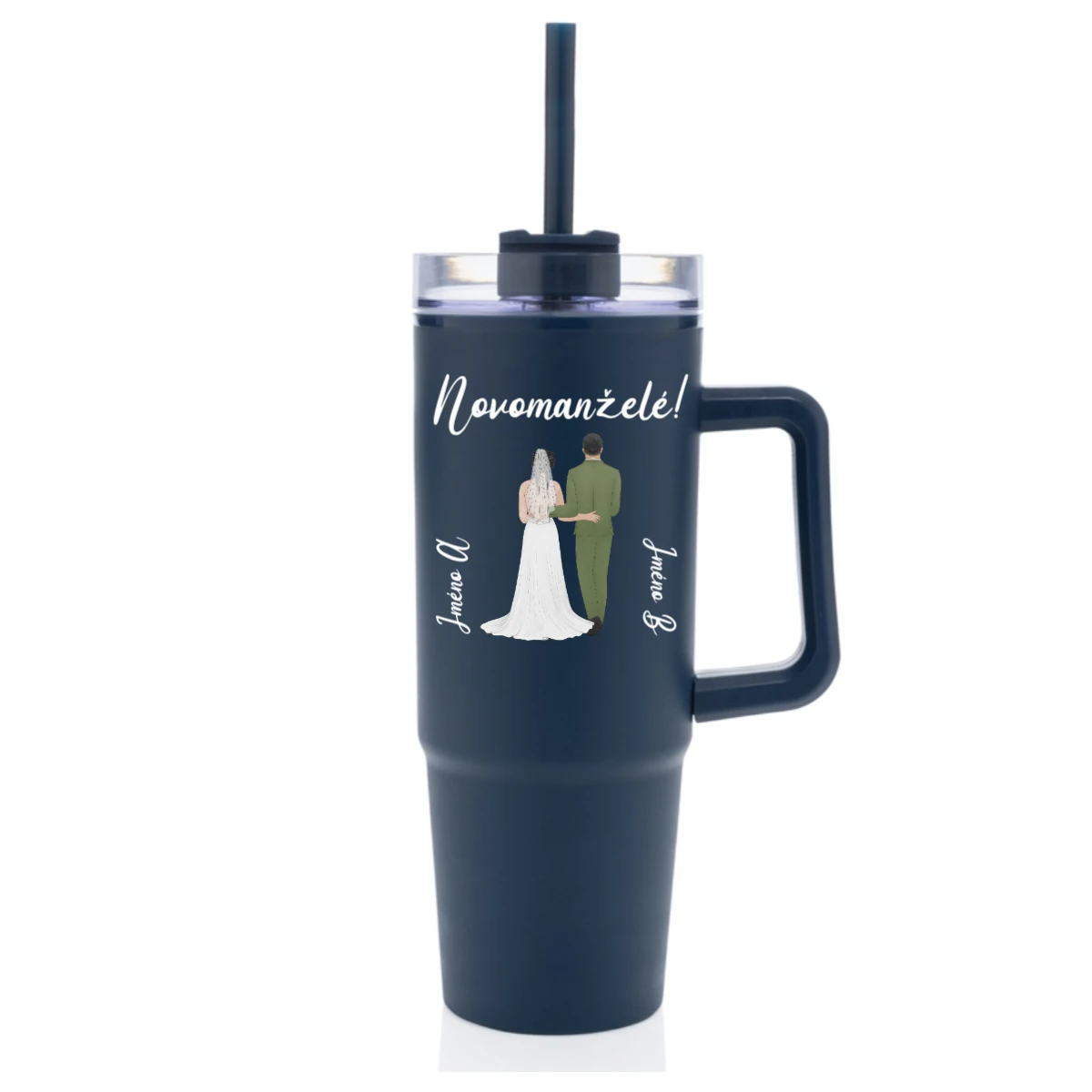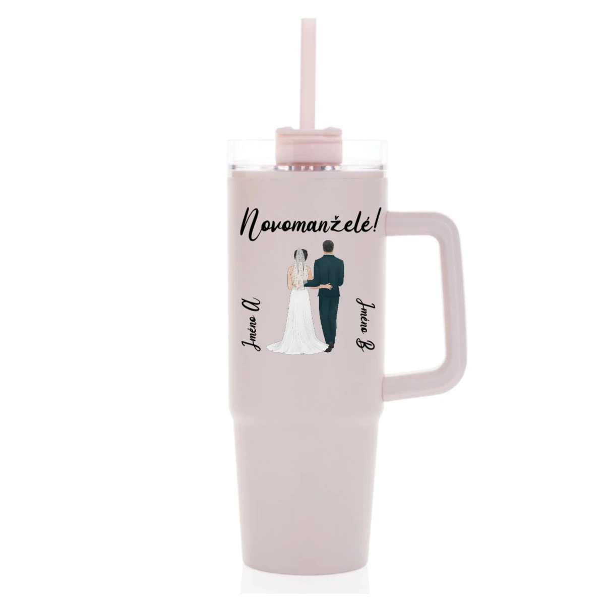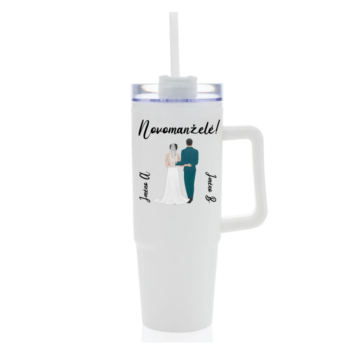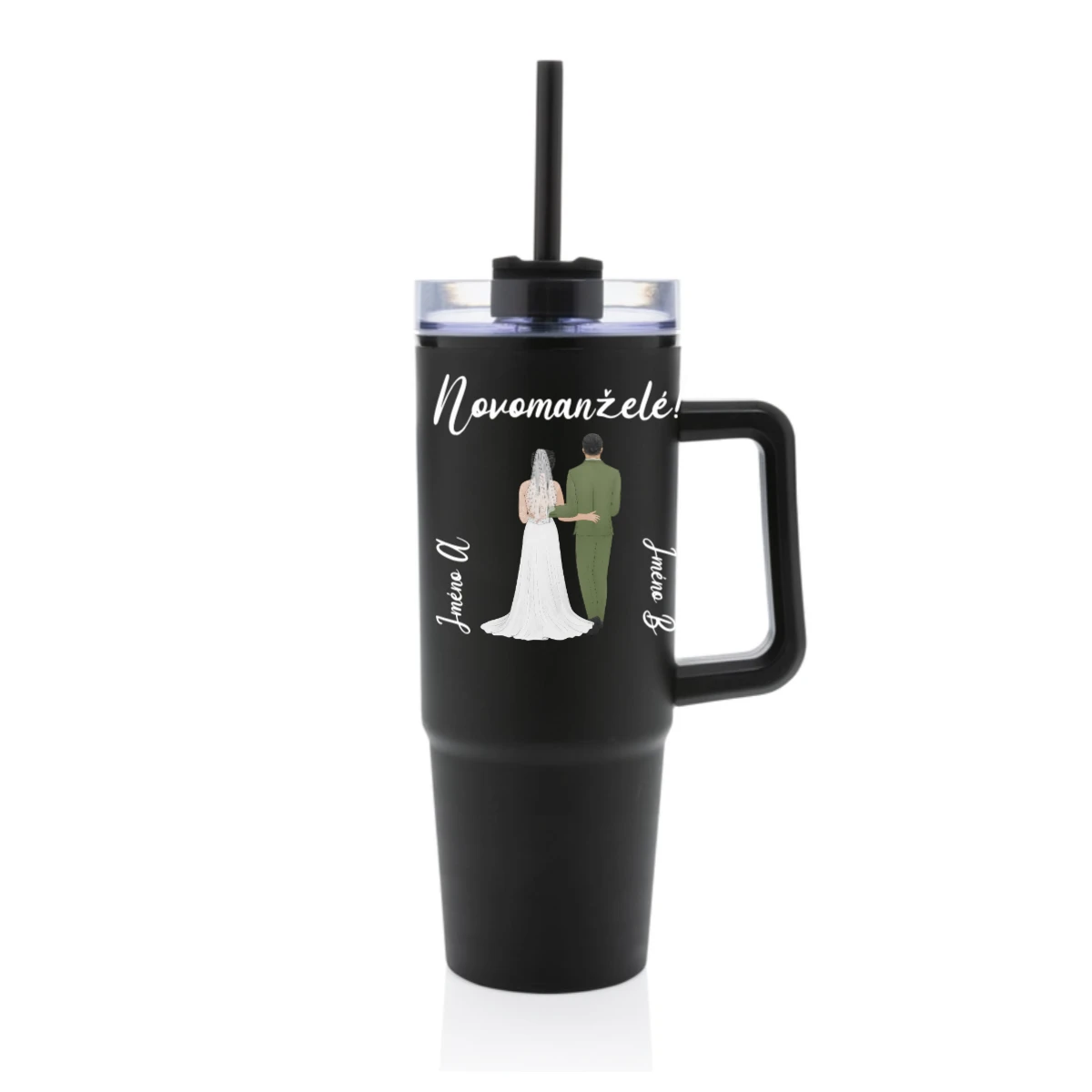 Personalizovaná termoska s průhledným víčkem s novomanželským párem