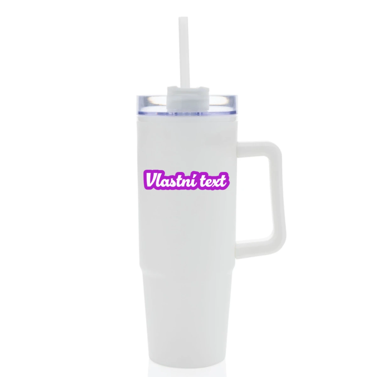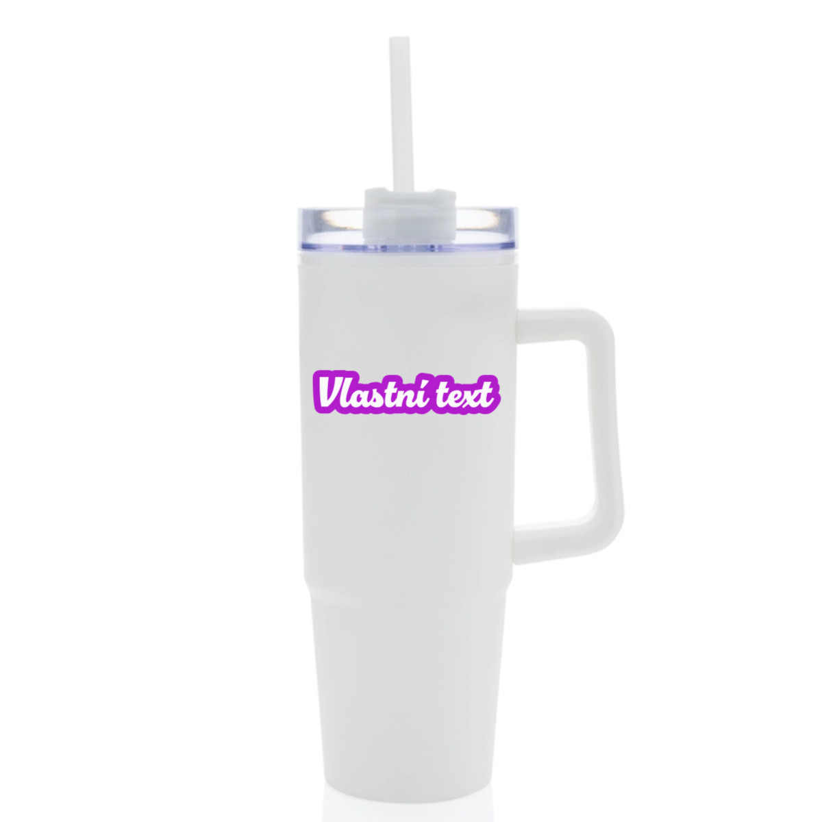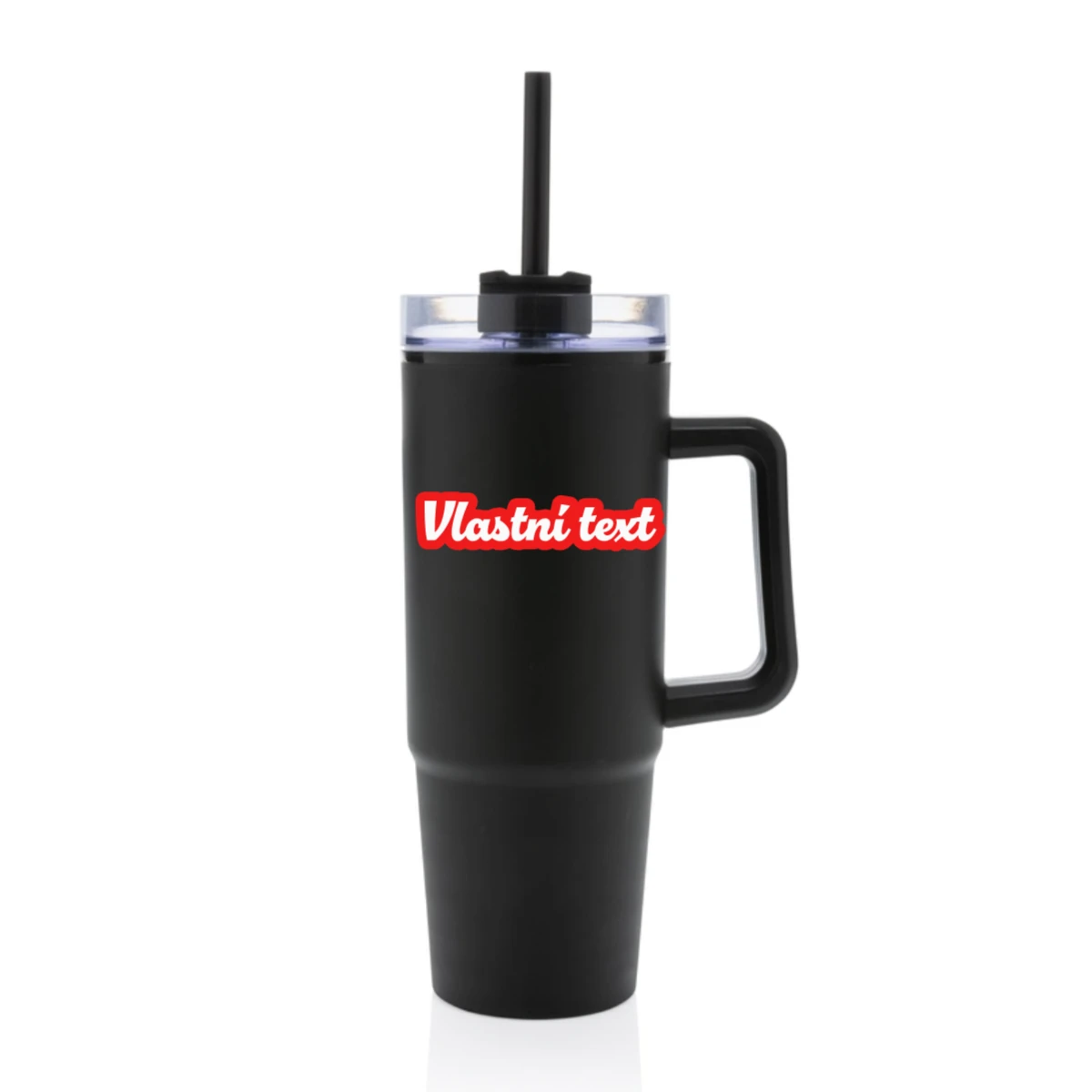 Velký cestovní termohrnek s uchem a slámkou – 900 ml