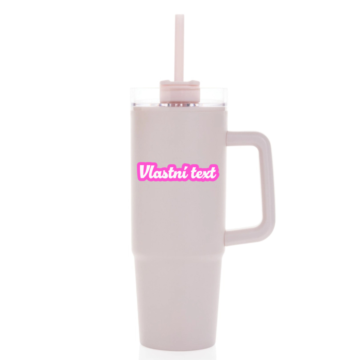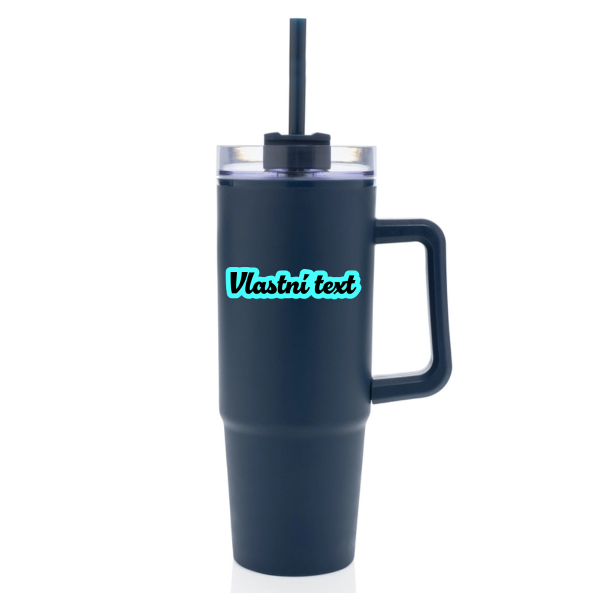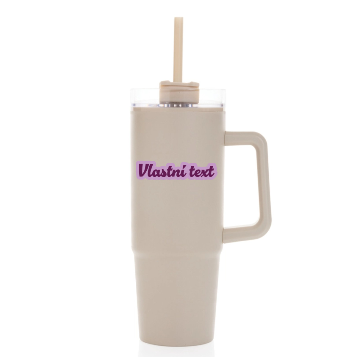 Velký cestovní termohrnek s uchem a slámkou – 900 ml