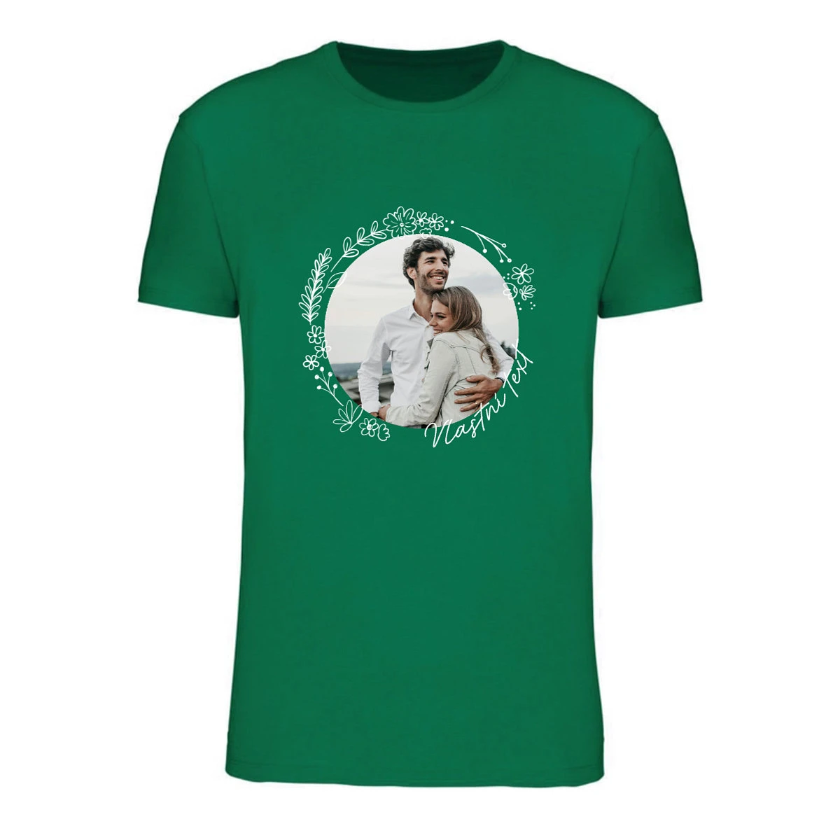 Personalizované bavlněné tričko promění Vaši oblíbenou fotografii v krásný design zasazený do kruhového formátu s květinovým ohraničením. Stačí nahrát snímek a během chvilky vznikne něžný motiv, který zaujme na první pohled.
