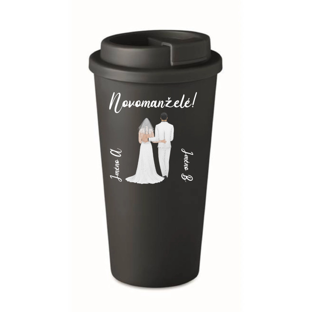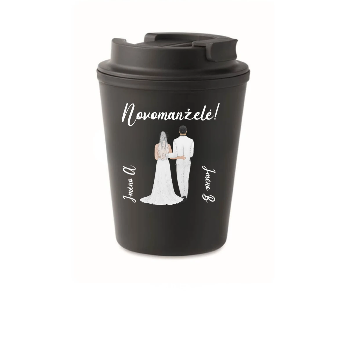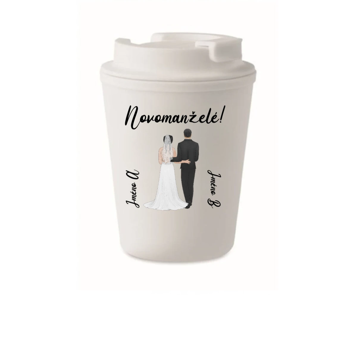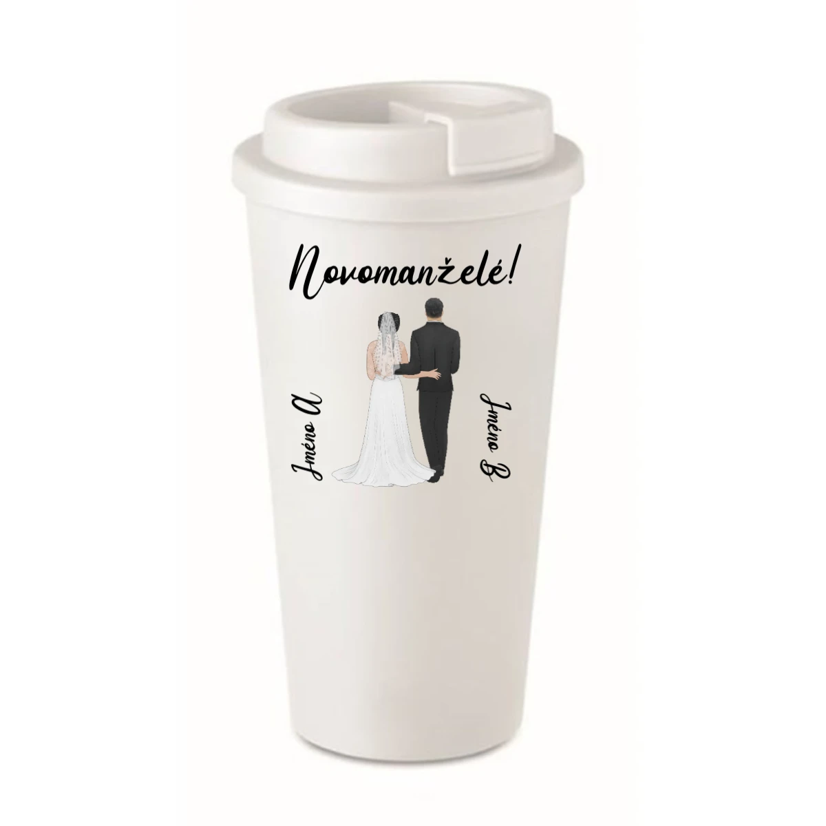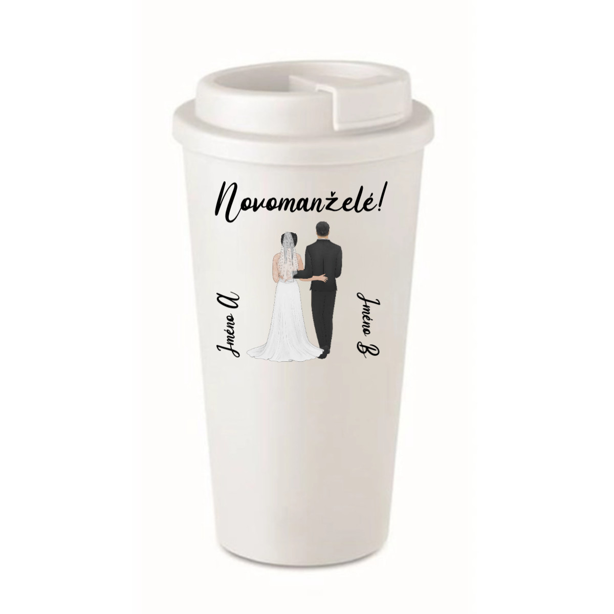 Personalizovaný cestovní termohrnek s novomanželským párem