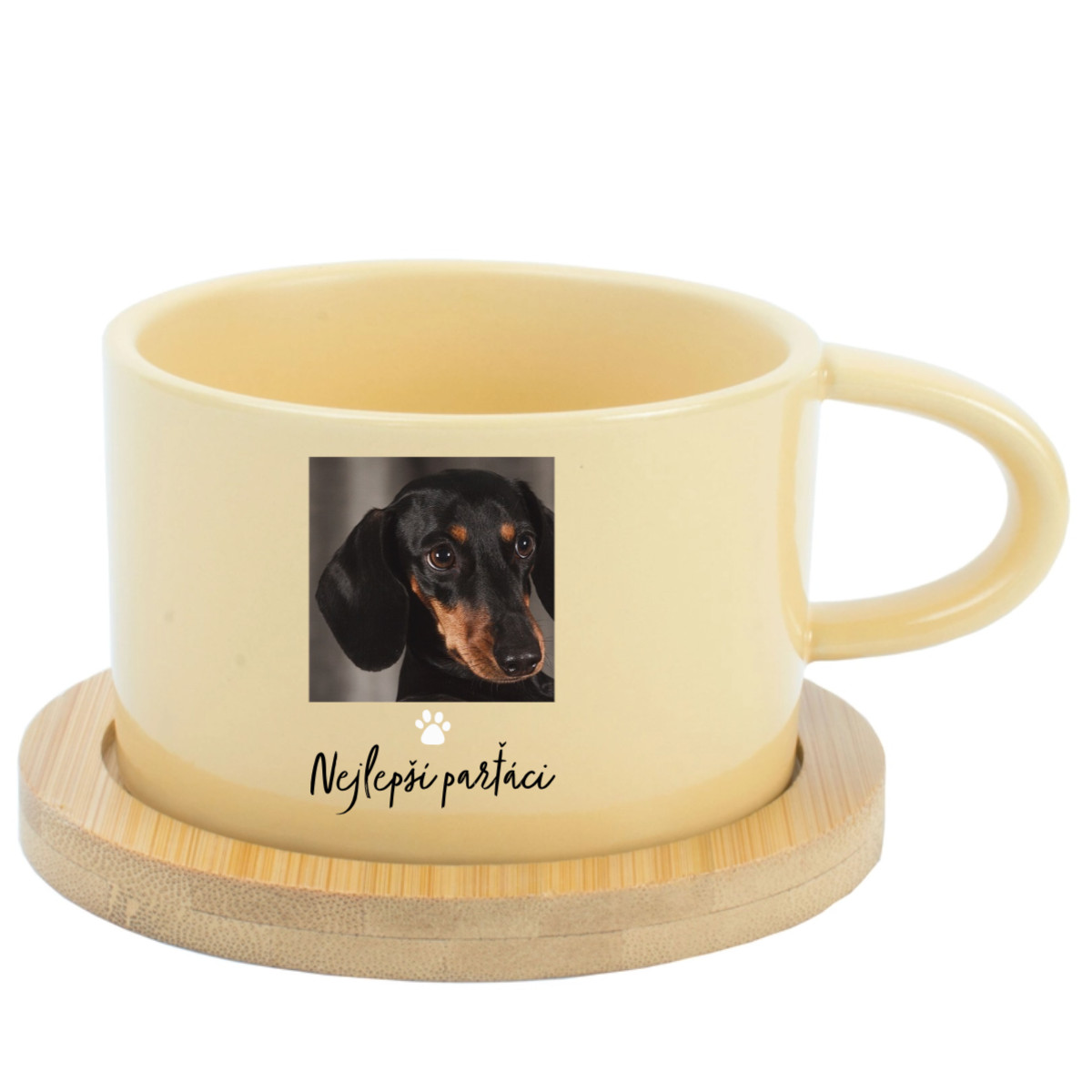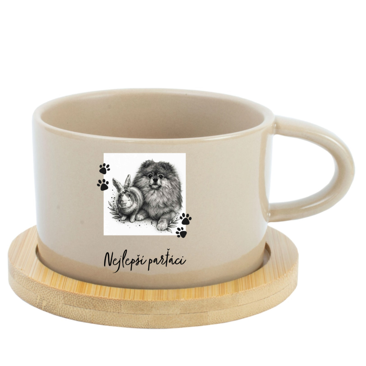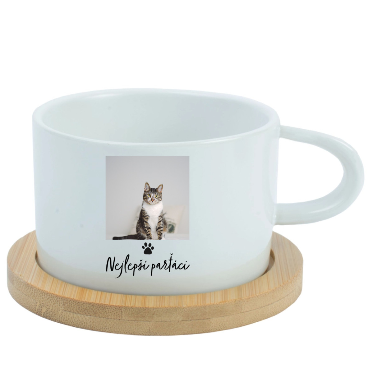 Personalizovaný keramický hrníček „Makronka“ s bambusovým podtáckem (200 ml)