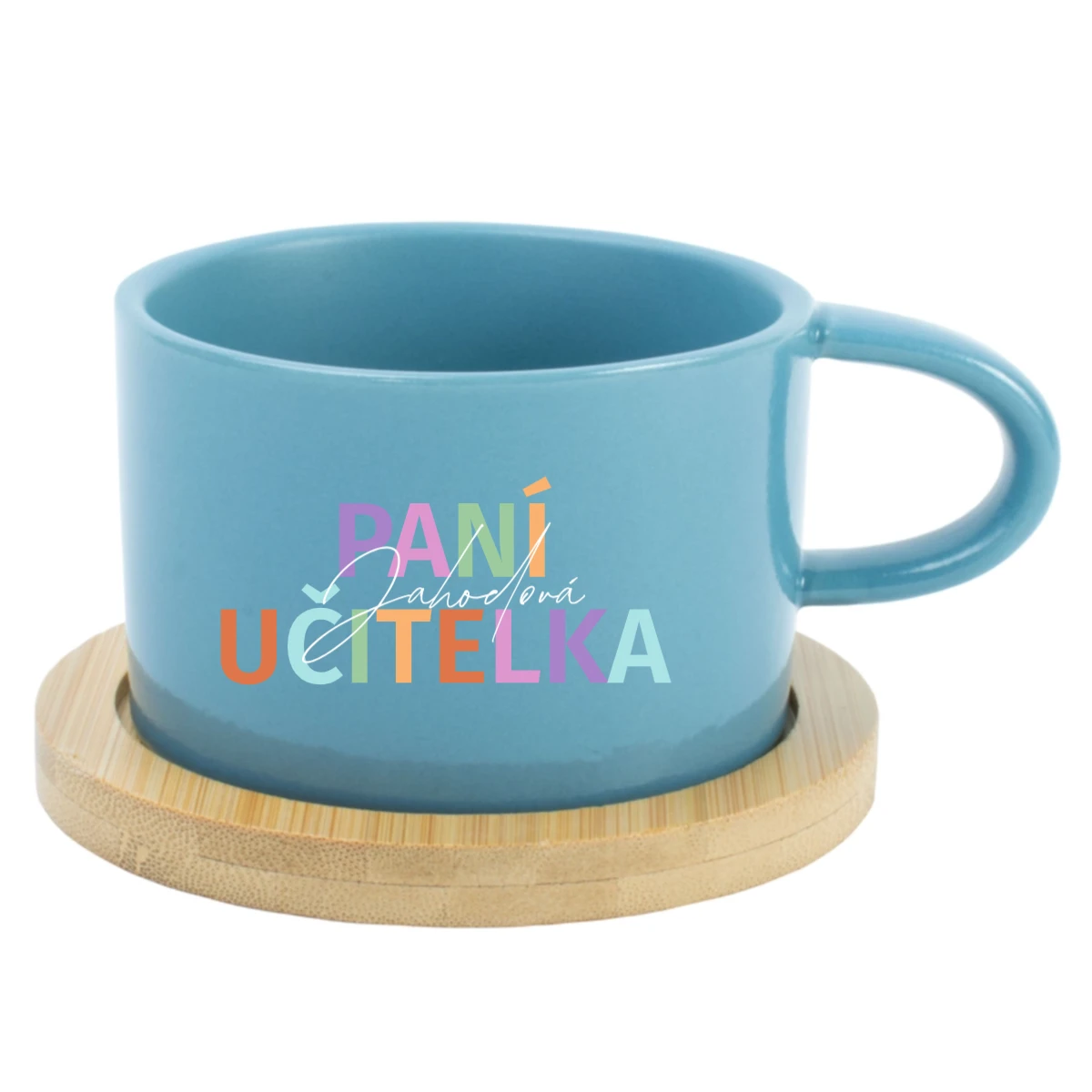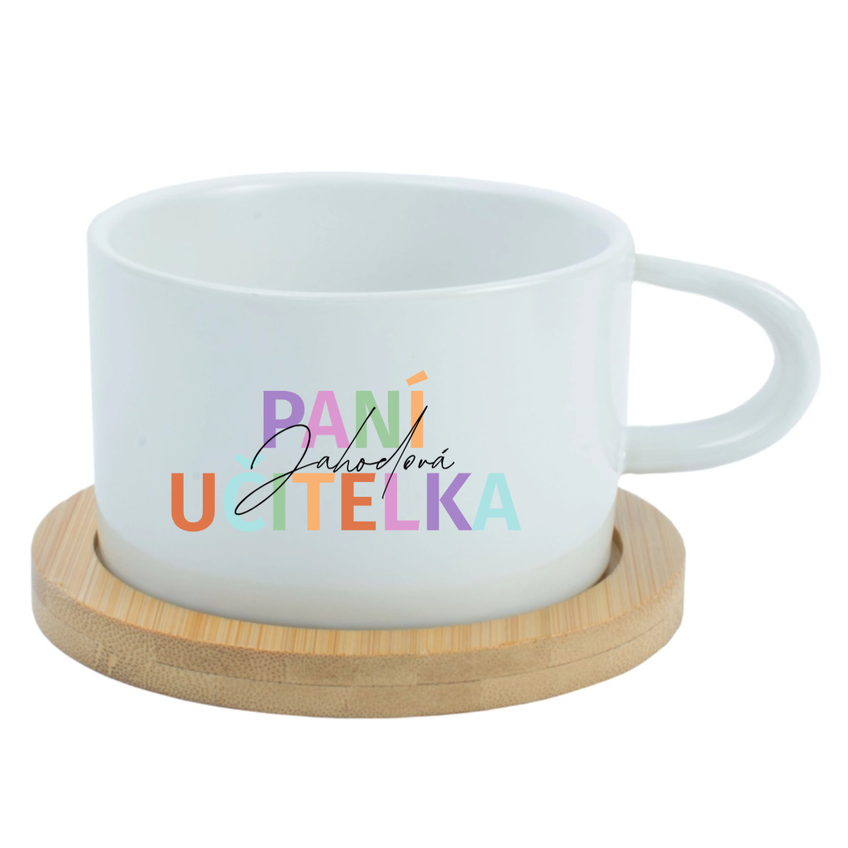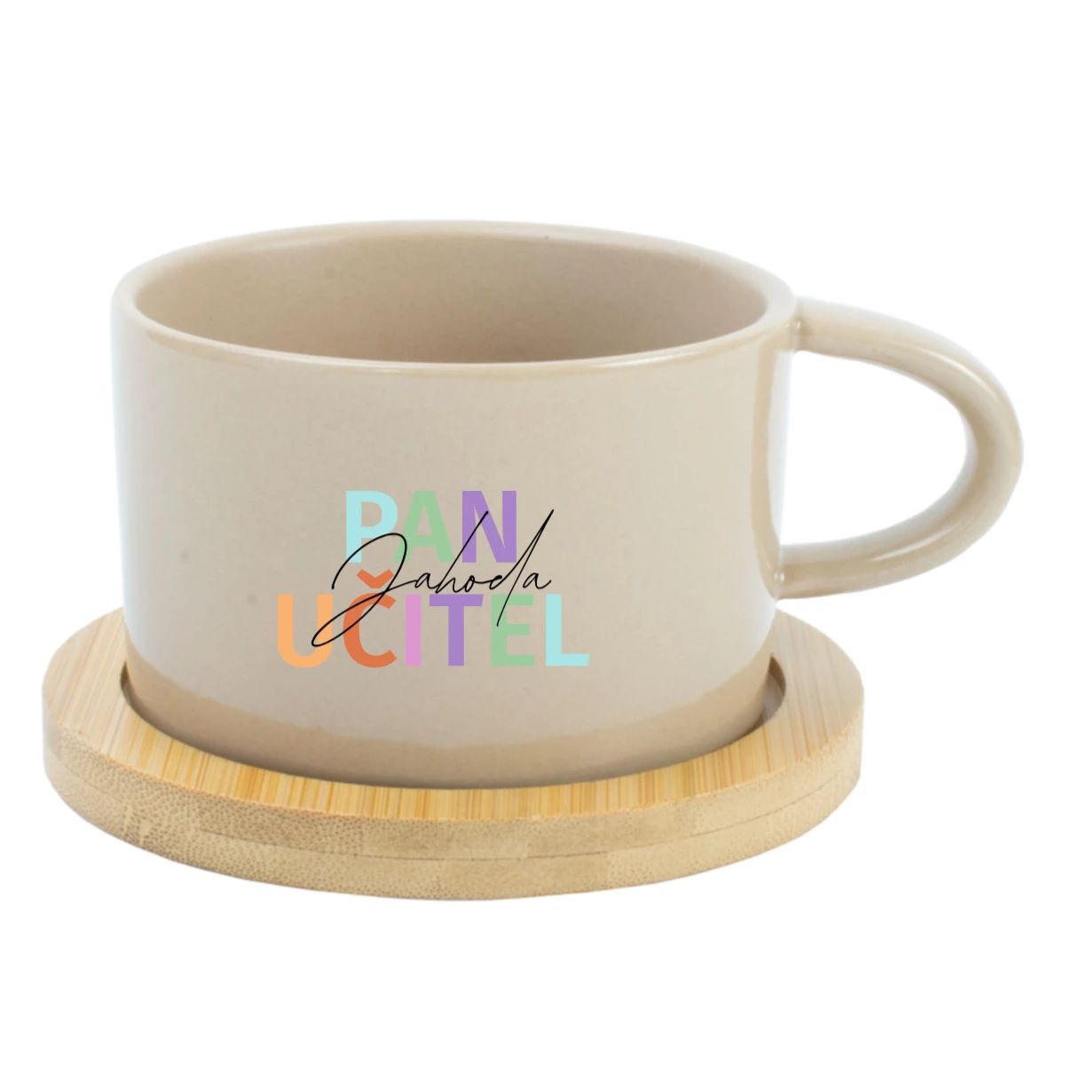 ☕ Keramický hrníček s bambusovým podtáckem pro paní učitelku / pana učitele – 200 ml