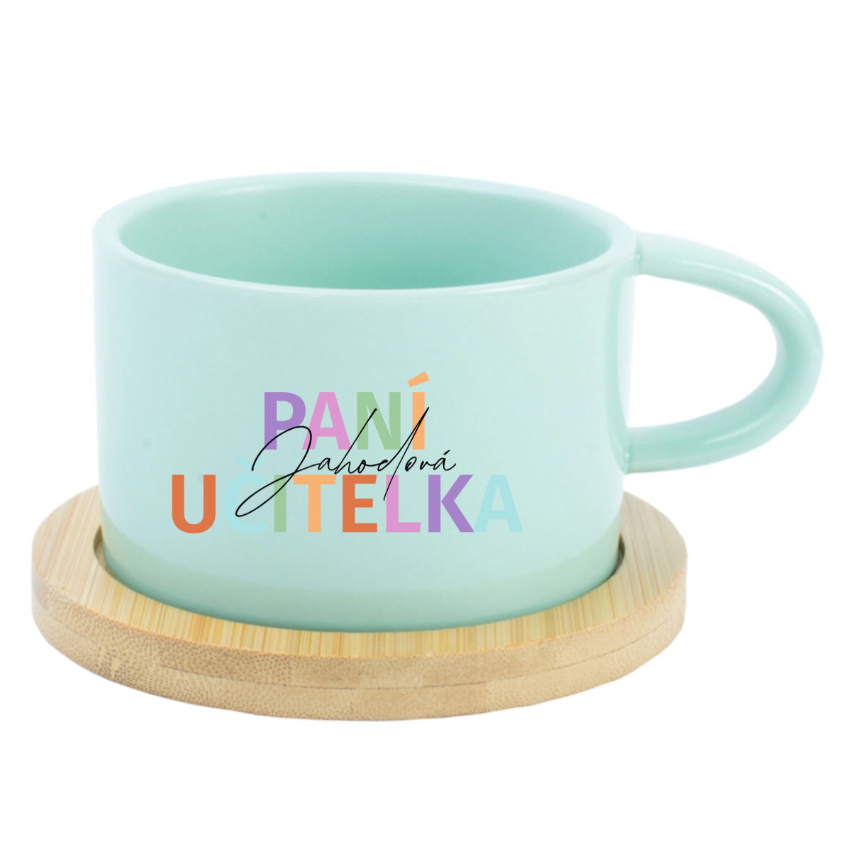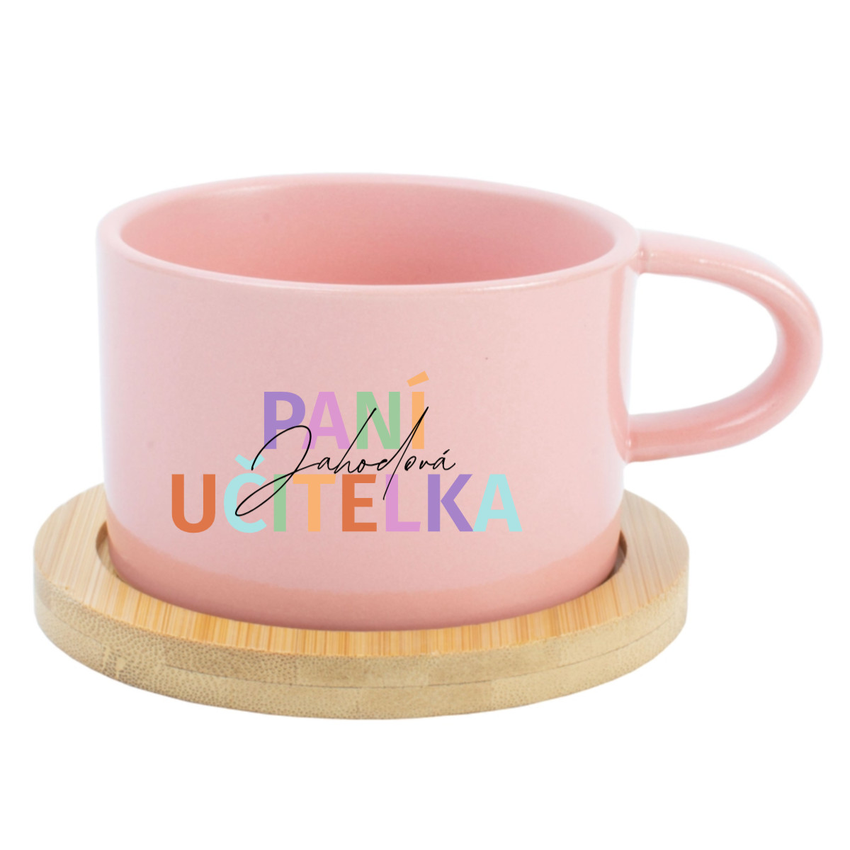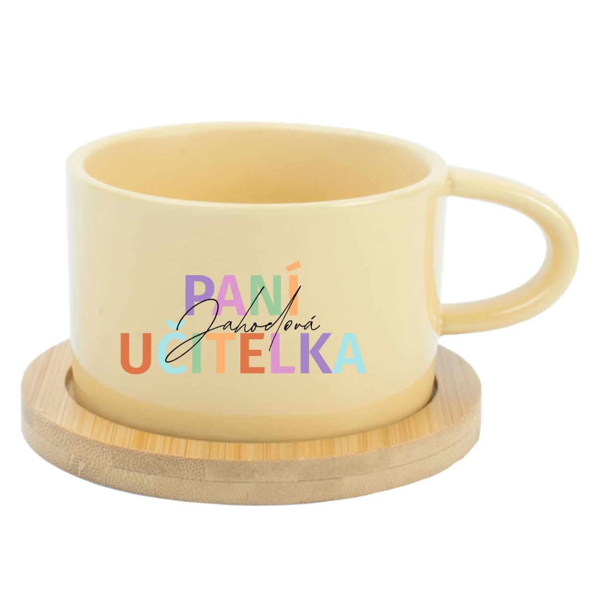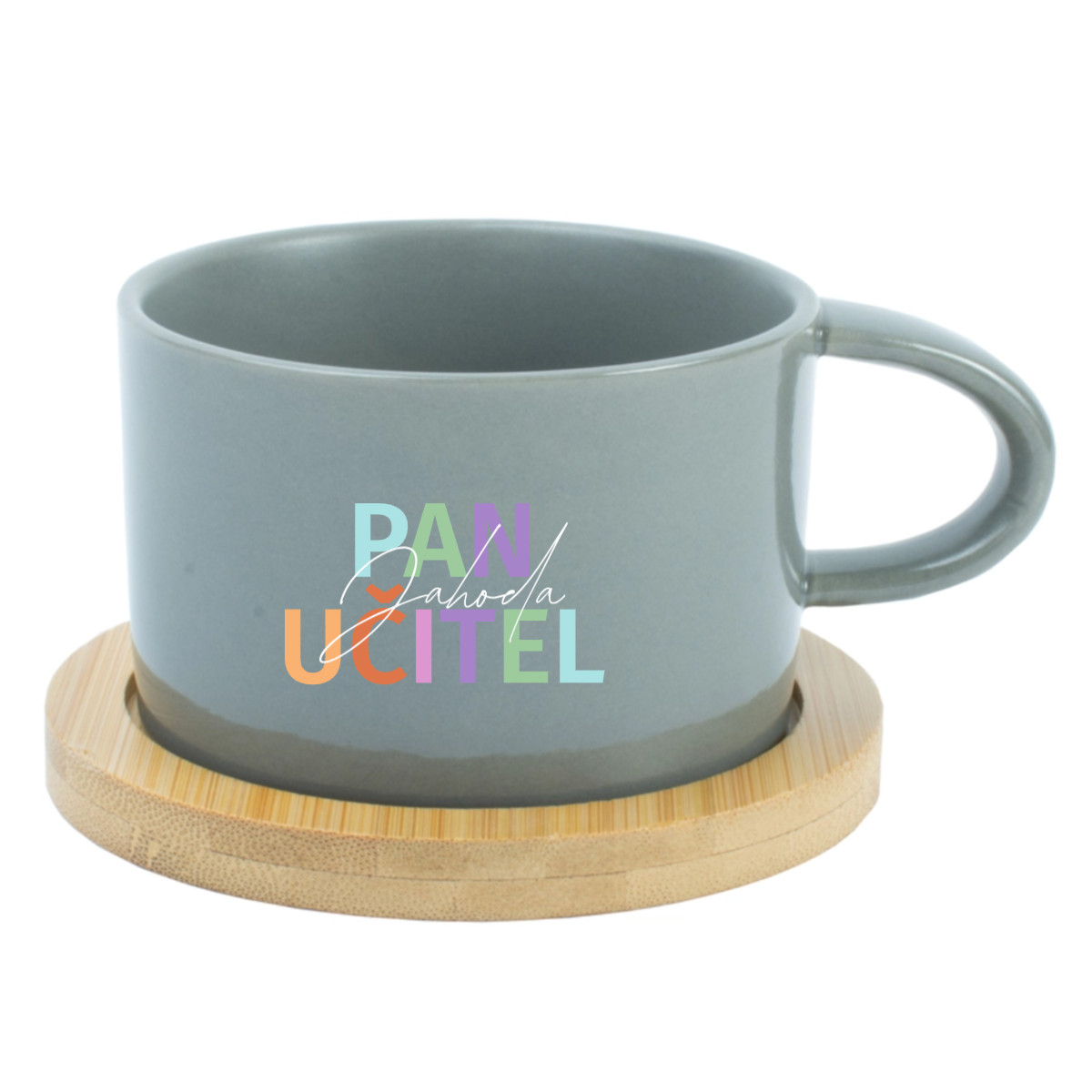 ☕ Keramický hrníček s bambusovým podtáckem pro paní učitelku / pana učitele – 200 ml