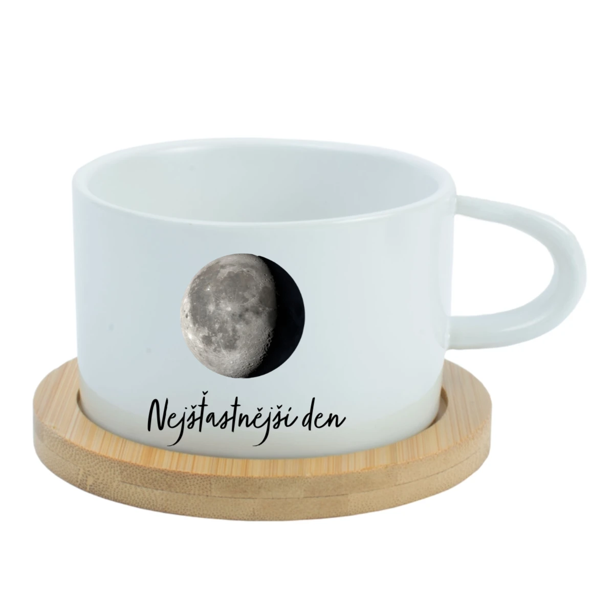 Malý, ale s velkým významem. Tento elegantní keramický hrnek zobrazí fázi Měsíce přesně podle Vámi zvoleného data – třeba narození dítěte, výročí nebo jiného výjimečného dne.