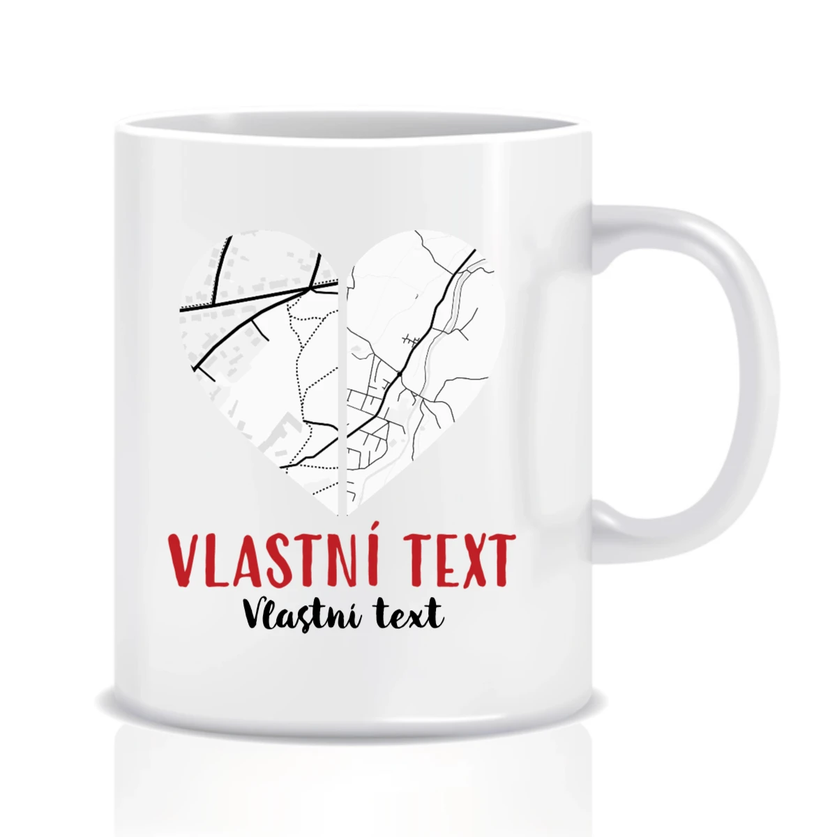 Personalizovaný klasický bílý keramický hrníček - dvě mapy jako srdce 300 ml ☕❤️