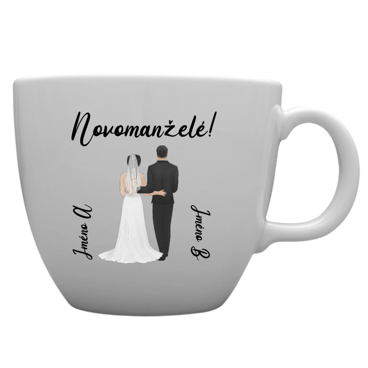 Personalizovaný MEGA XXL keramický hrnek 1000 ml s novomanželským párem