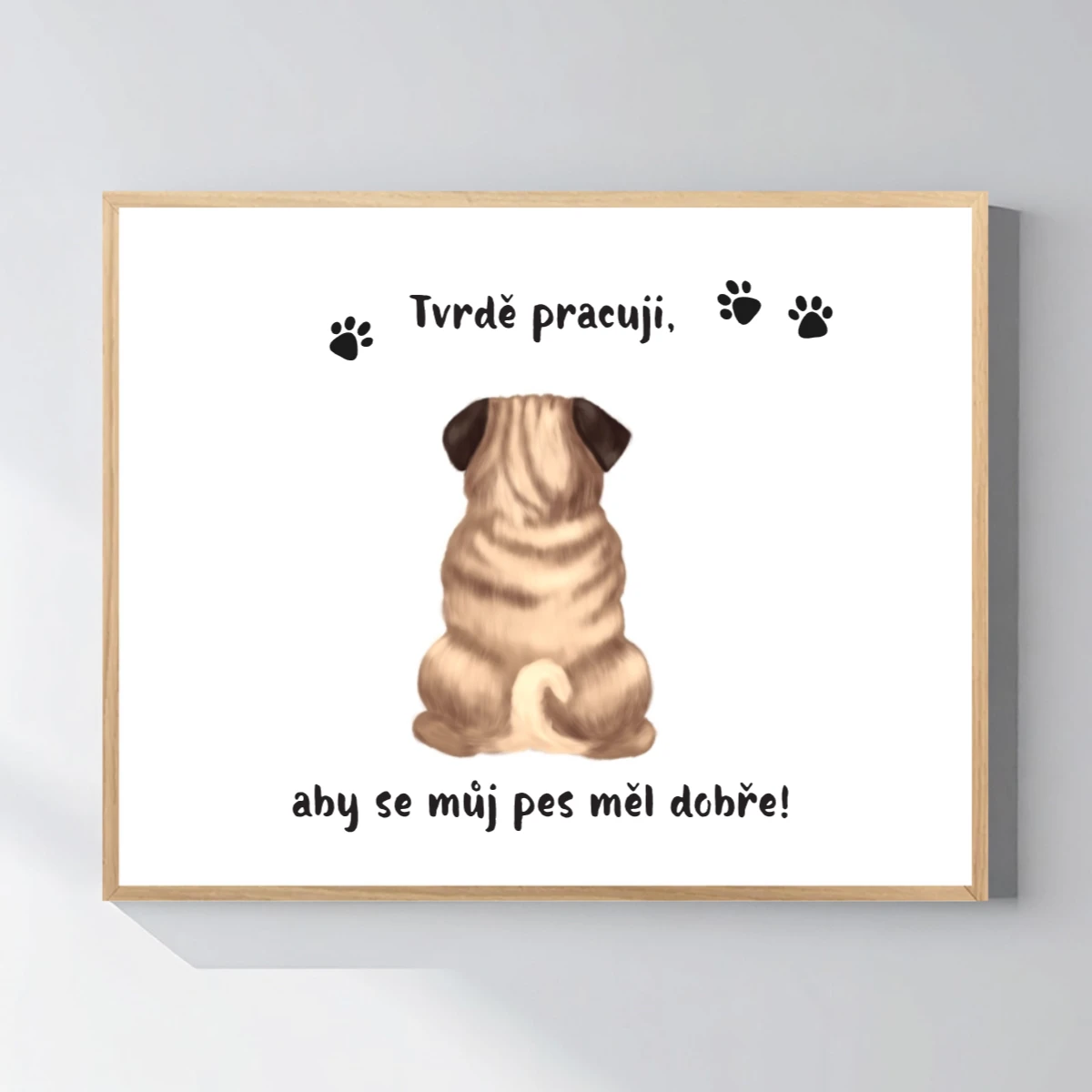 Personalizovaný plakát v rámu 40x50 cm – „Tvrdě pracuji, aby se moje smečka měla dobře“ 🐾❤️