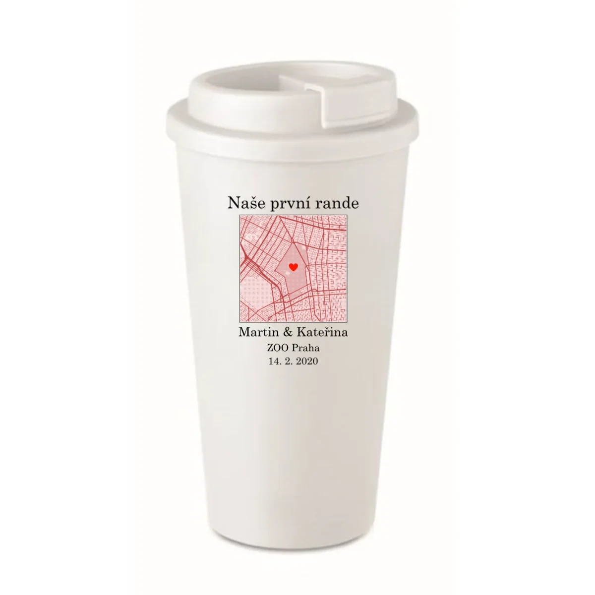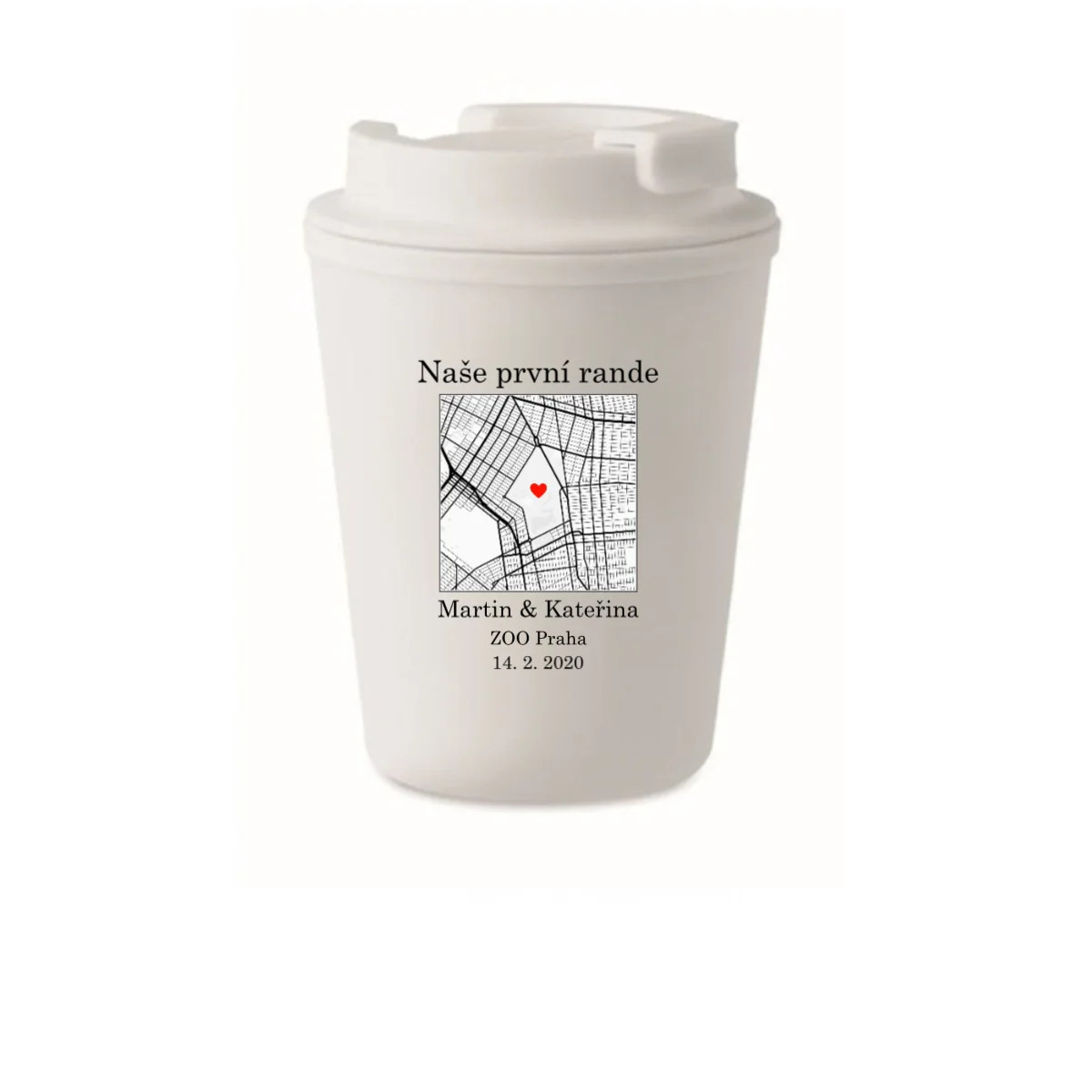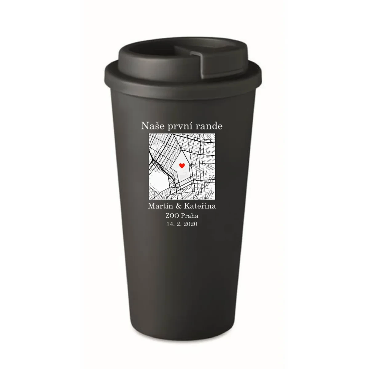 Každý z nás má místo, kde to všechno začalo. První rande, nezapomenutelný výlet, důležitý okamžik… Teď si ho můžete vzít kamkoli s sebou. Tento personalizovaný cestovní hrnek zdobí mapa podle Vašeho výběru – přesně s adresou, která má pro Vás význam. Přidáte dvě jména, osobní popisek a vznikne unikátní hrnek, který bude nejen praktický, ale i plný emocí.
