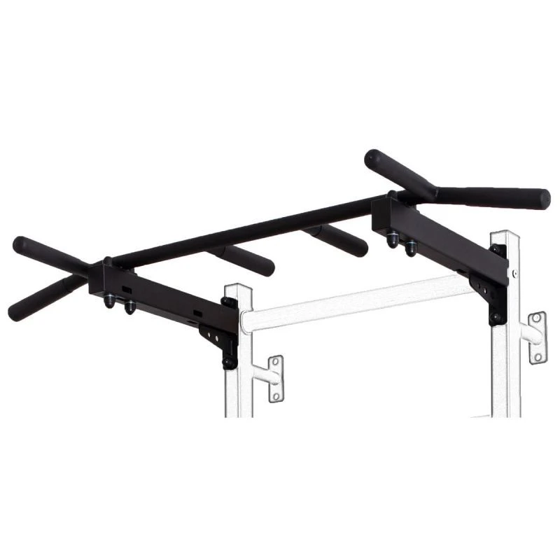 Pevně namontovaná kovová přítahová tyč se 6 různými úchyty umožňuje procvičovat svaly paží a zad pomocí různých úchopů, např. širokého úchopu.