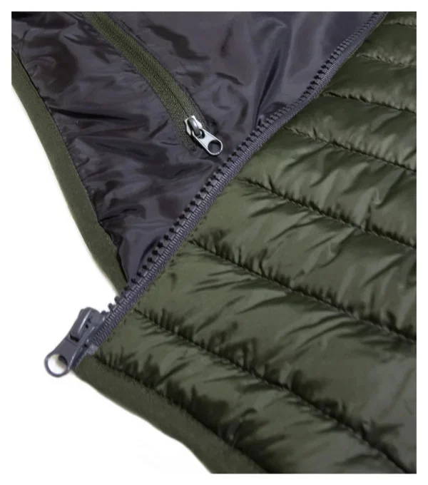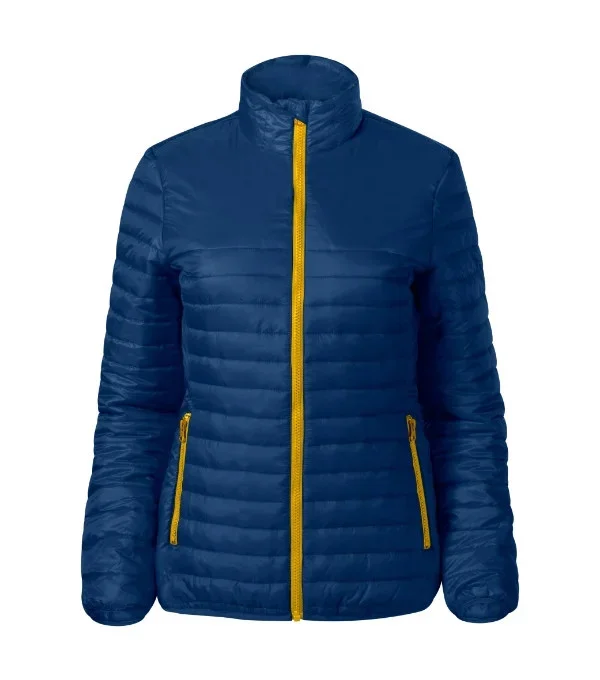 sbalitelná do vnitřní kapsy lehký hřejivý materiál členěný prošíváním střih tvarovaný bočními díly celopropínací kostěný zip s krytkou brady kapsy s kostěným zipem vnitřní kapsa na suchý zip vstup pro branding v bočním švu podšívky lemování elastickým proužkem