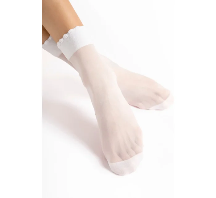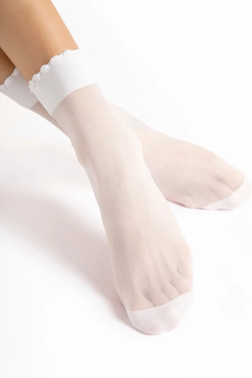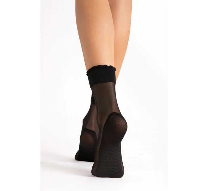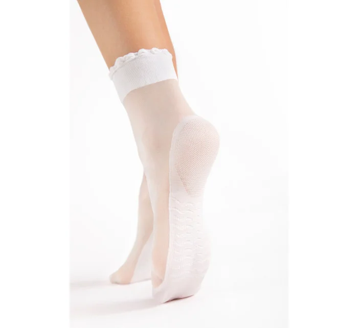 Ponožky Pico Massage 20 denier od společnosti Fiore jsou elegantním a funkčním doplňkem, který spojuje styl s pohodlím.Průhledný materiál zdůrazňuje jemnost a lehkost, zatímco jemný volánek na lemu dodává šarm.Inovativní podrážka s masážním efektem podporuje pohodlí při nošení a poskytuje chodidlu jemnou stimulaci při každém kroku.Zesílená pata a špička zvyšují odolnost výrobku, takže je ideální volbou pro každodenní nošení i zvláštní příležitosti.