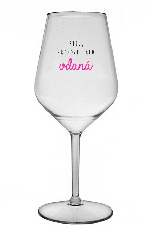 PIJU, PROTOŽE JSEM VDANÁ - čirá nerozbitná sklenice na víno 470 ml