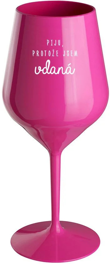 PIJU, PROTOŽE JSEM VDANÁ - růžová nerozbitná sklenice na víno 470 ml
