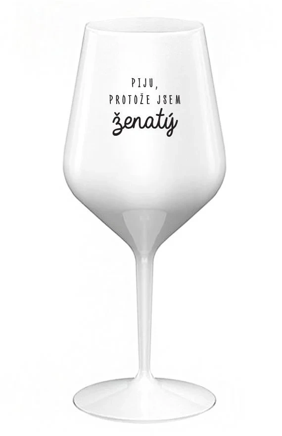 PIJU, PROTOŽE JSEM ŽENATÝ - bílá nerozbitná sklenice na víno 470 ml
