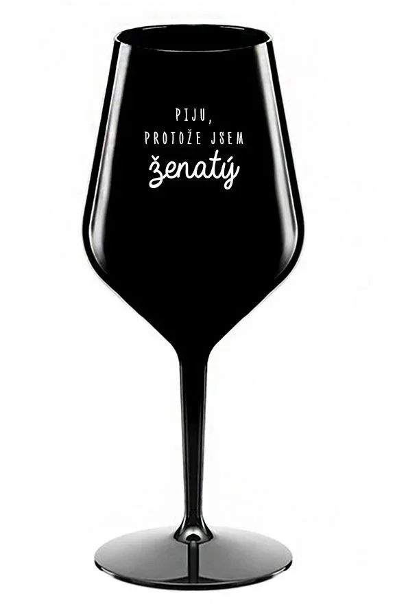 PIJU, PROTOŽE JSEM ŽENATÝ - černá nerozbitná sklenice na víno 470 ml