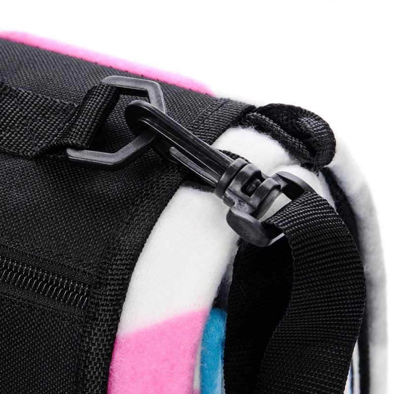 - Je vybaven kapsou na zip, rukojetí pro přenášení, nastavitelným ramenním popruhem a poutky pro připevnění kolíčků