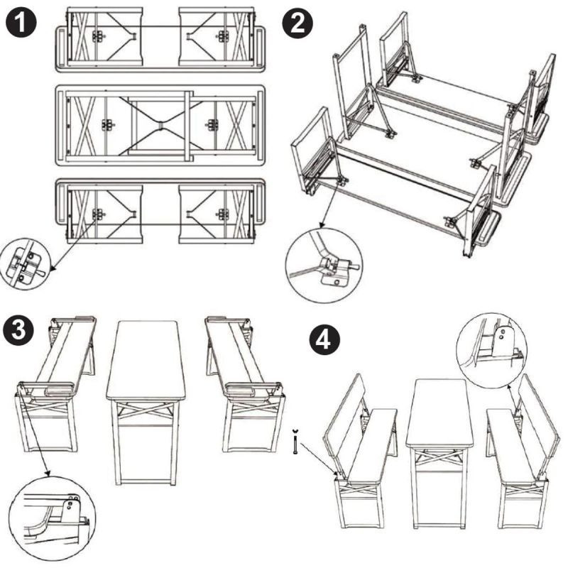 Celý set, tedy stůl a 2 lavice, byl navržen tak, aby ve složeném stavu zabíral jen velmi málo místa, což usnadňuje jeho skladování a přepravu. Navíc speciální zámky na rámech zajistí vaši bezpečnost při používání.