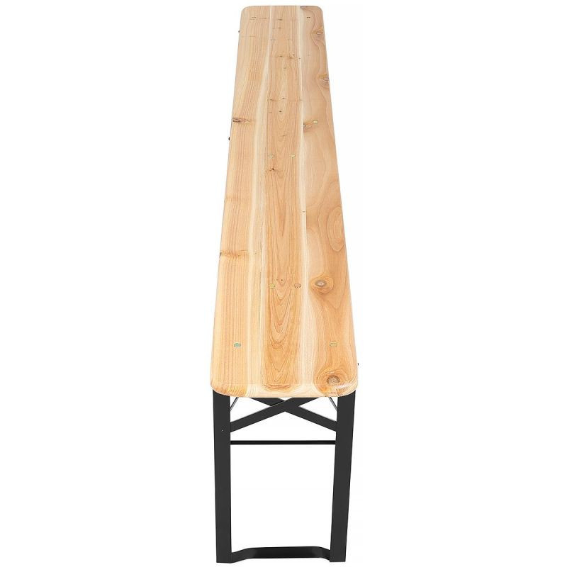 Všechny prvky mají pevnou železnou konstrukci, díky níž je nosnost každé lavice 300 kg a stolu 100 kg. Desky jsou vyrobeny z klasického, elegantního a impregnovaného dřeva, u stolu o tloušťce 2 cm a u lavic o tloušťce 2,5 cm. Jen nezapomeňte nenechávat nábytek dlouho venku, protože není odolný vůči měnícím se povětrnostním podmínkám (např.: déšť, sníh a UV záření).
