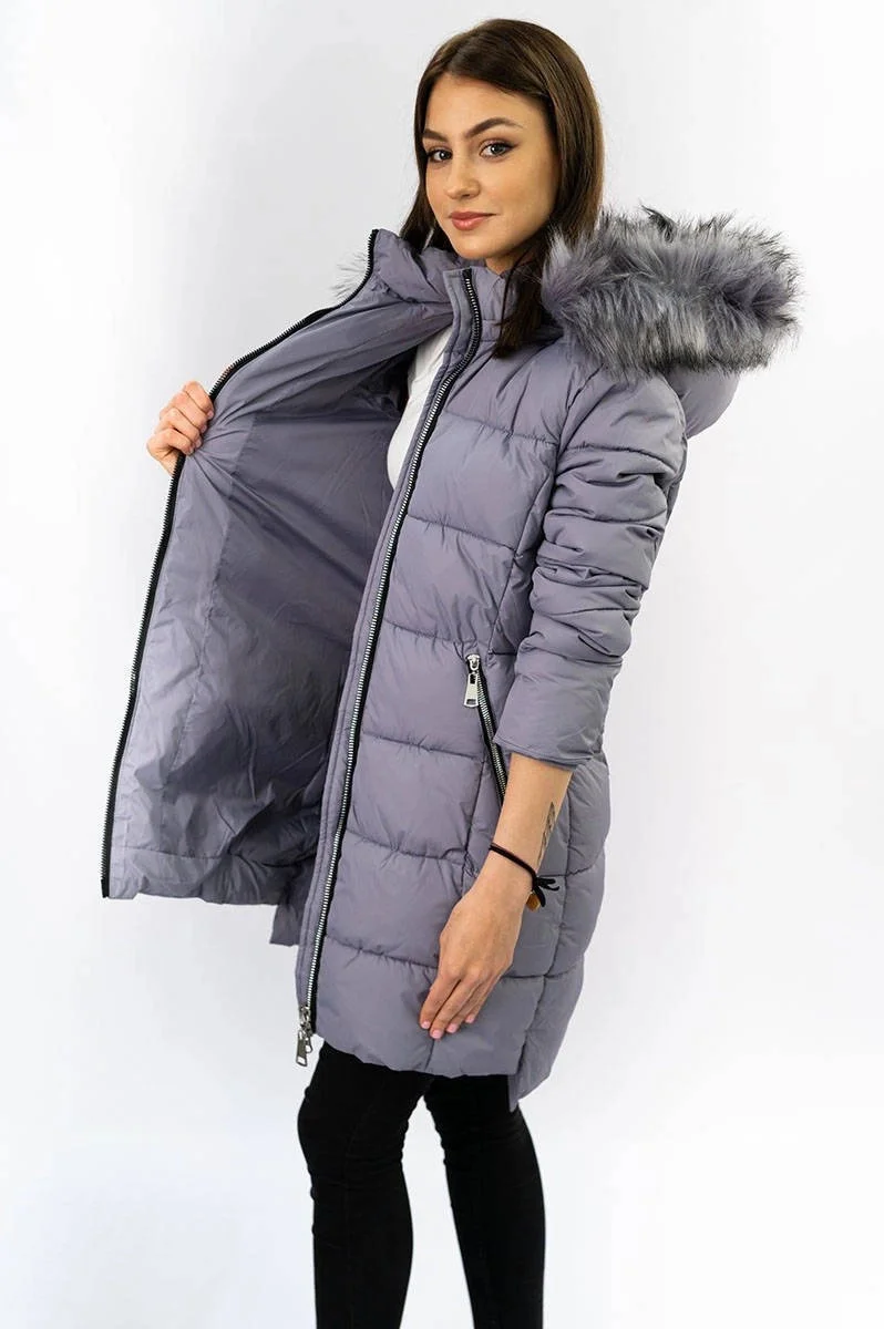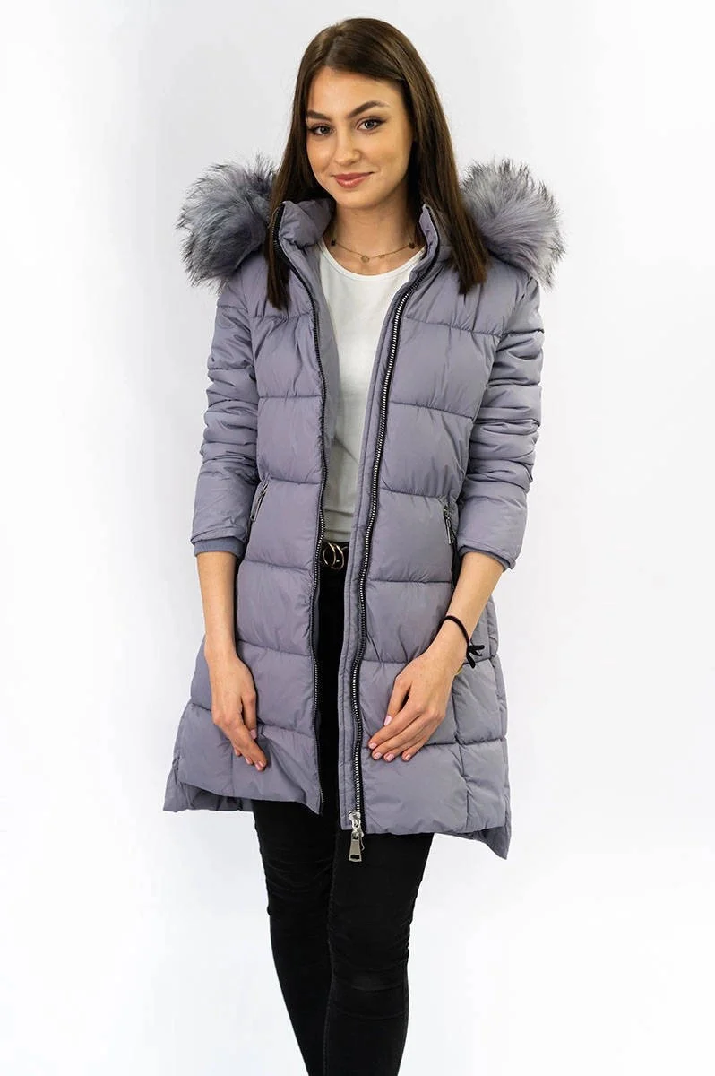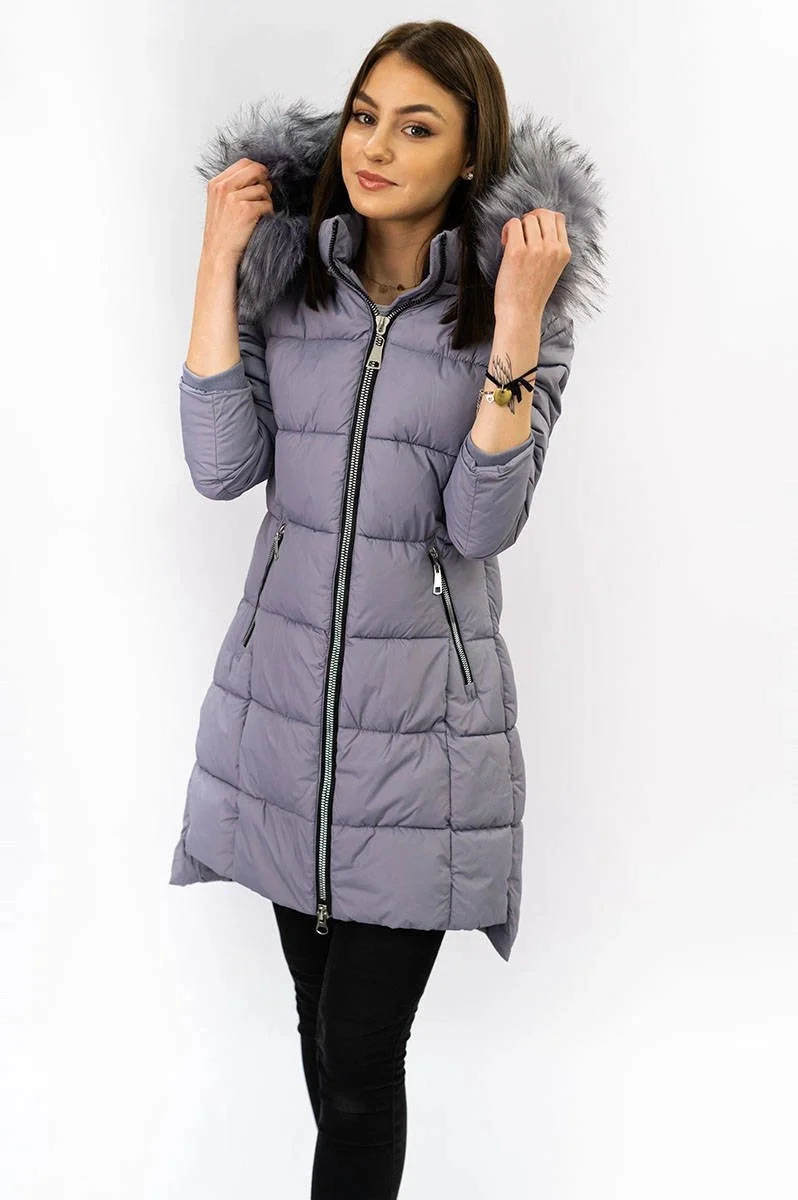 PIKOWANA DAMSKA KURTKA ZIMOWA Z KAPTUREM WRZOSOWA (7702)