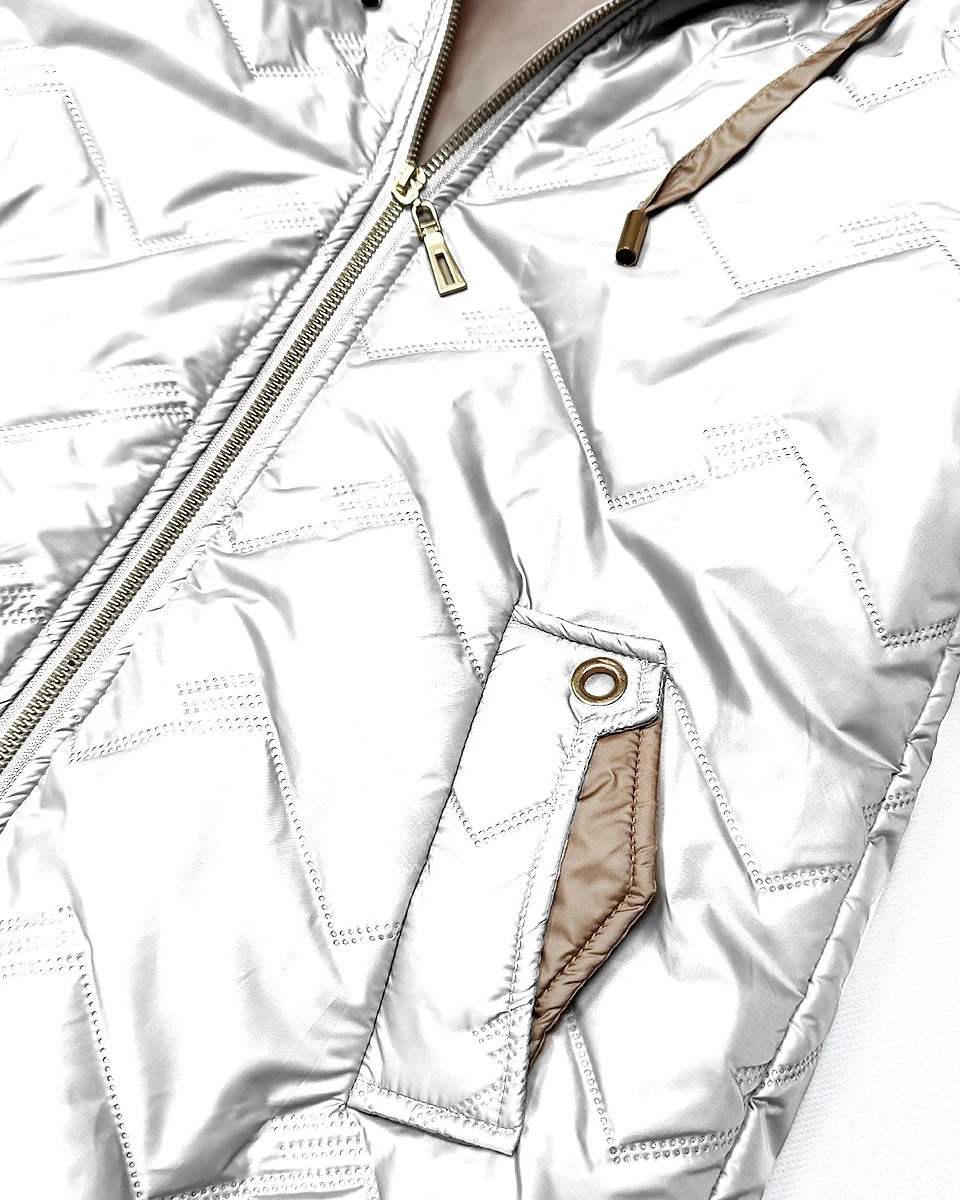 Pikowana kurtka damska z kapturem Goodlookin biała (B8596-26)