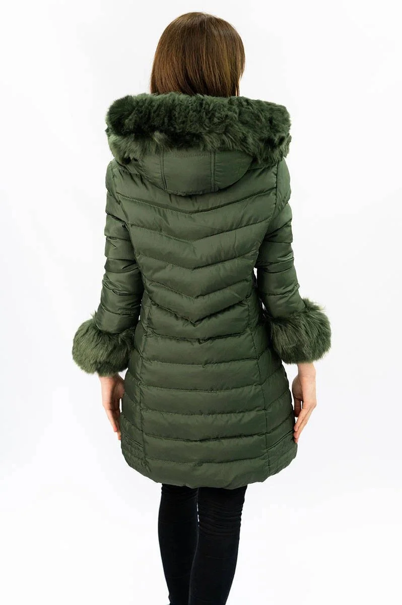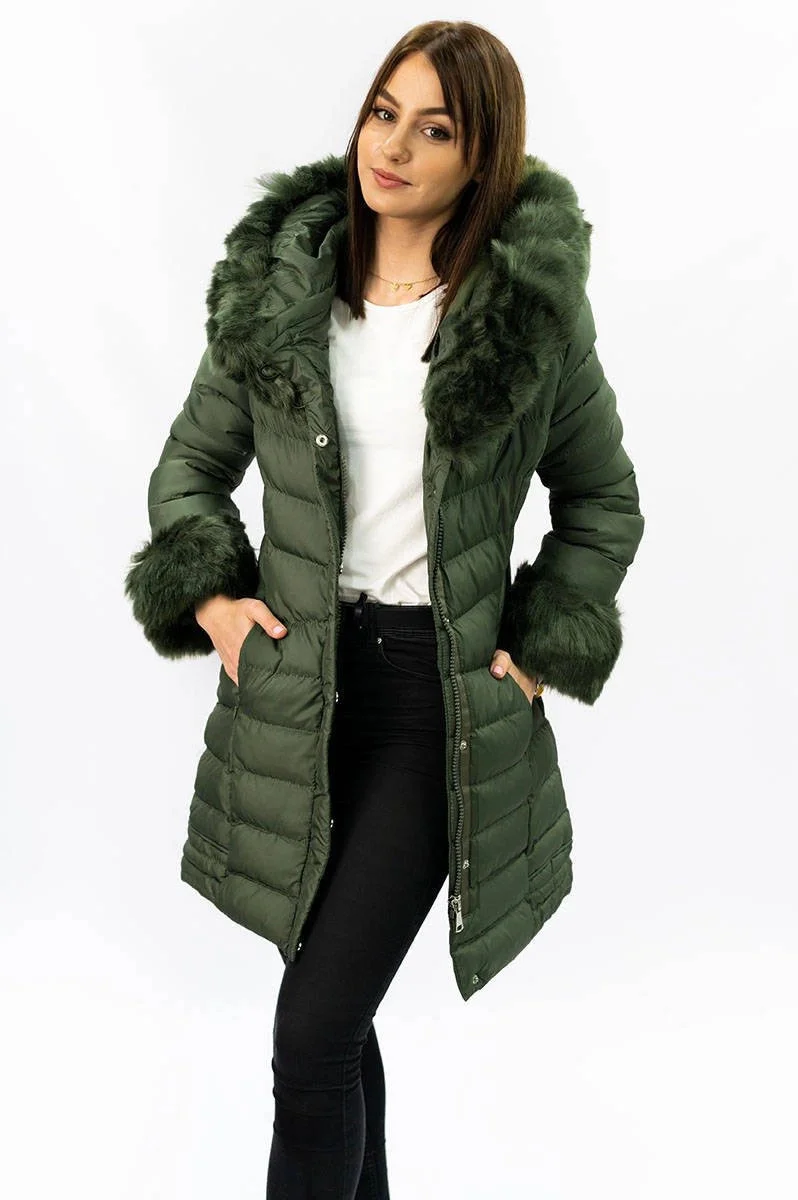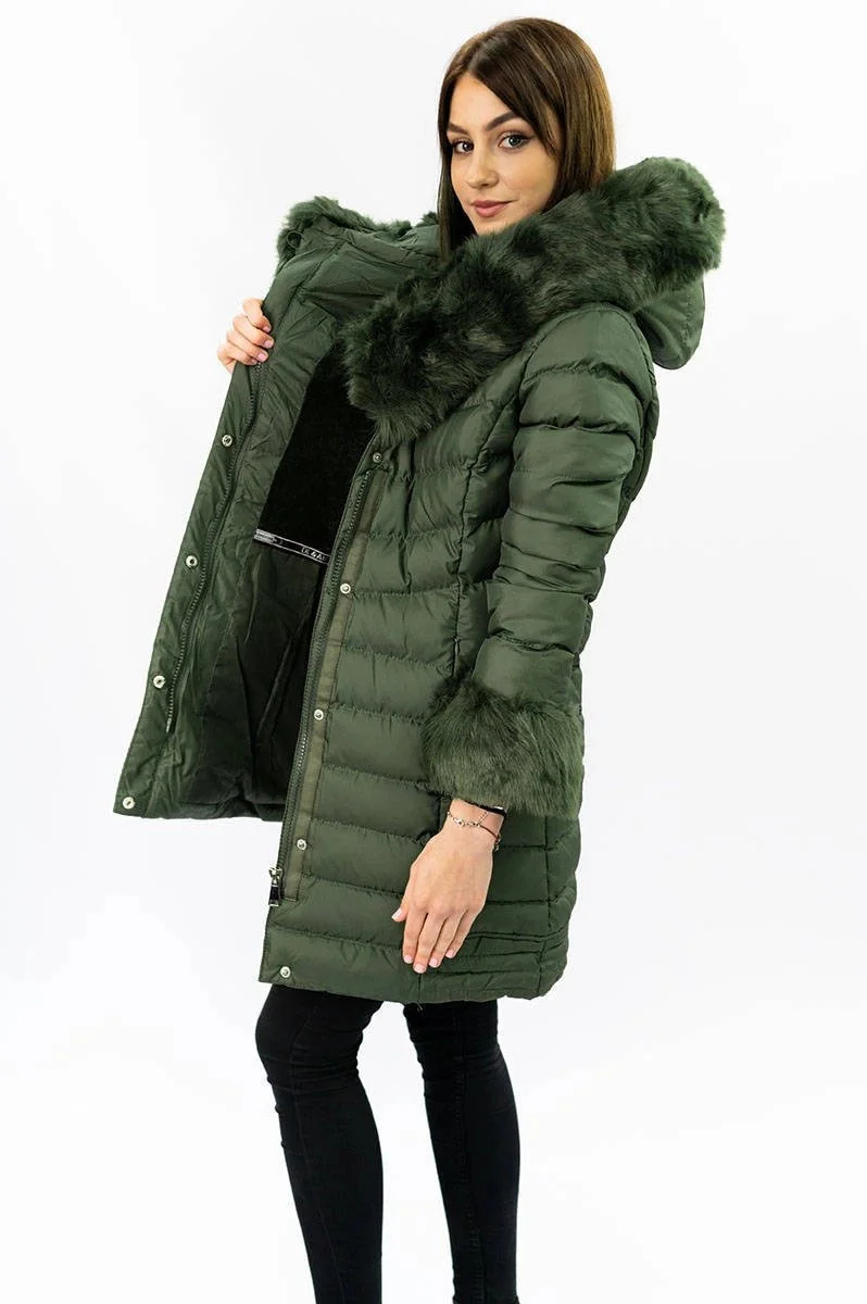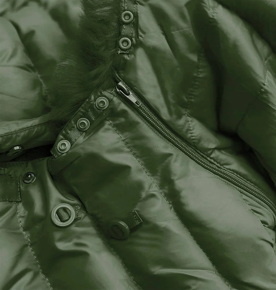PIKOWANA KURTKA DAMSKA ZIMOWA Z KAPTUREM KHAKI model 21241769 - SPEED.A