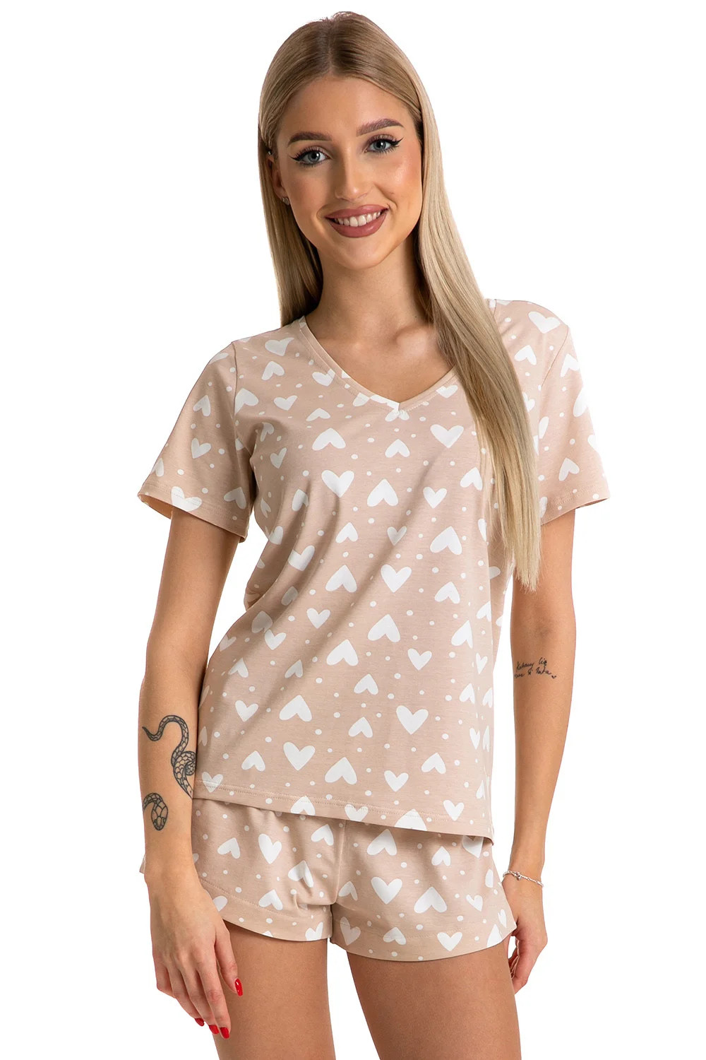 Noční košile značky Piu Bella. model PKK-44. Výrobek je vyroben z 94 % bavlny, 6 % elastanu. délka rukávu: krátký. délka: krátká. dámský výrobek. typ výstřihu: špičatý.