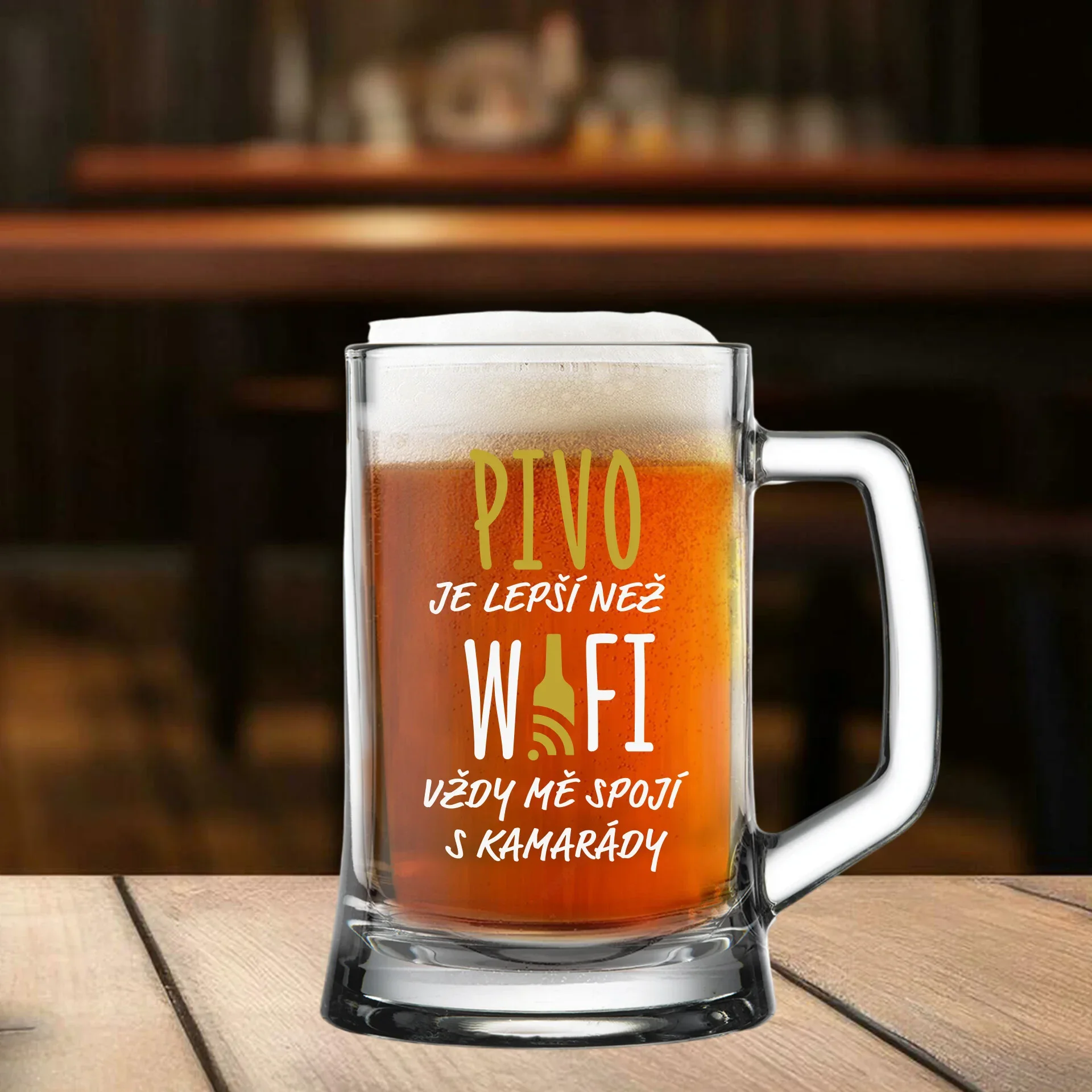 PIVO - LEPŠÍ NEŽ WI-FI, VŽDY MĚ SPOJÍ S KAMARÁDY - pivní sklenice 0,5 l