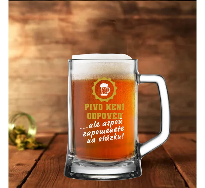 PIVO NENÍ ODPOVĚĎ, ALE ASPOŇ ZAPOMENETE NA OTÁZKU - pivní sklenice 0,5