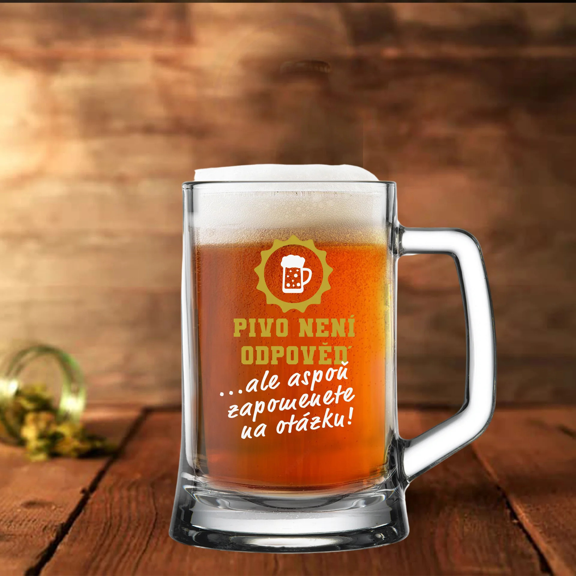 PIVO NENÍ ODPOVĚĎ, ALE ASPOŇ ZAPOMENETE NA OTÁZKU - pivní sklenice 0,5