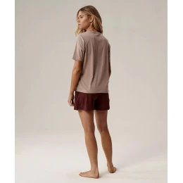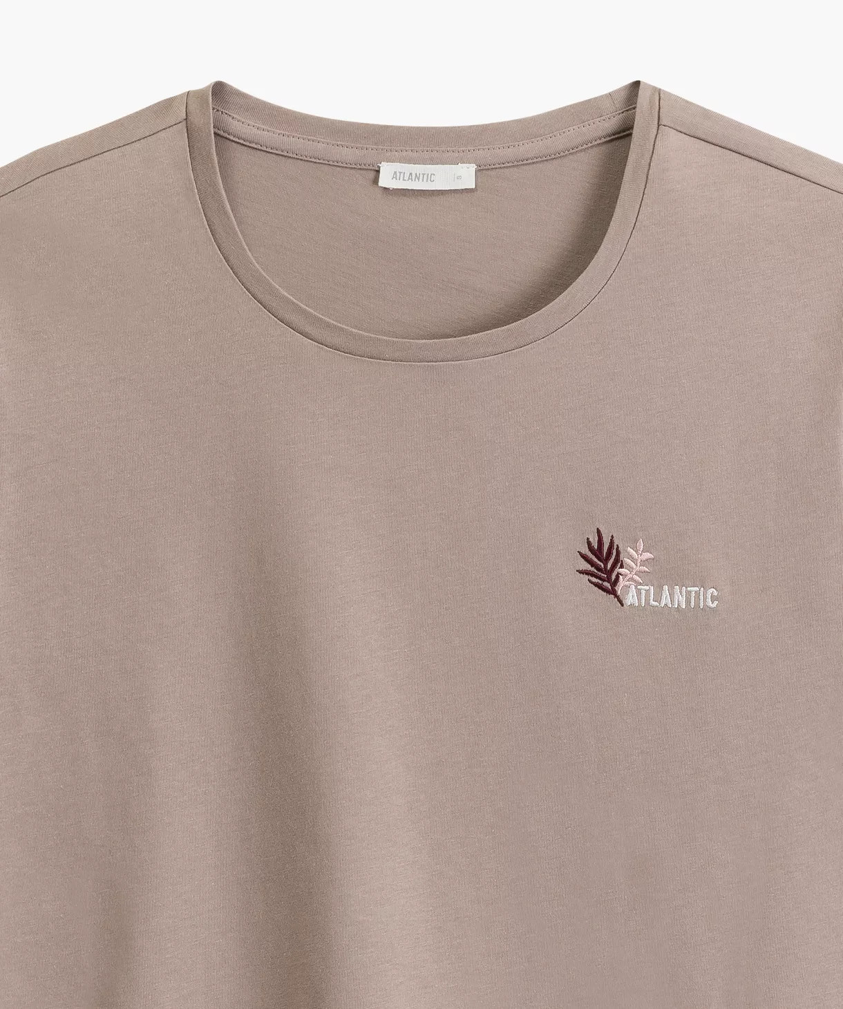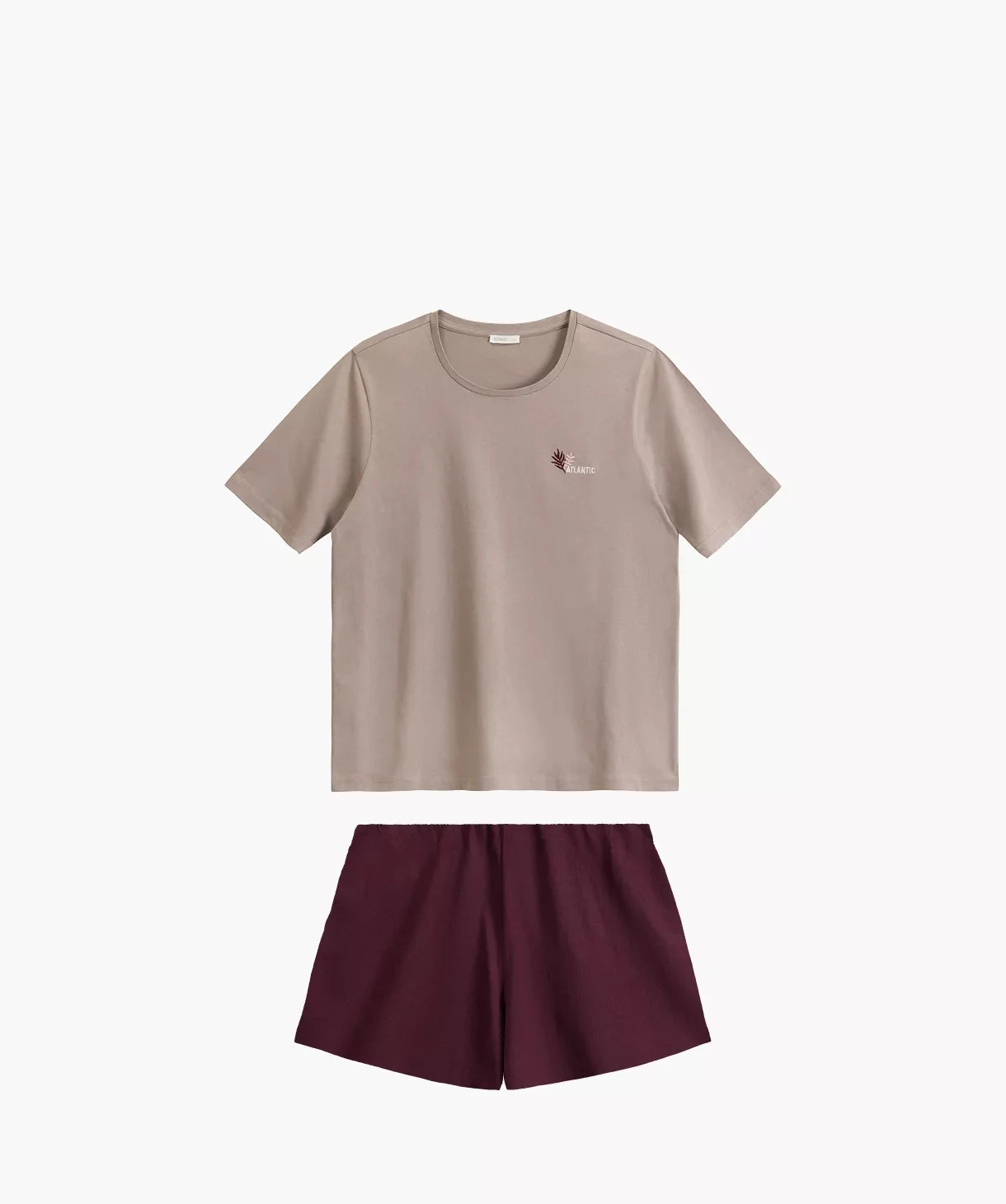 Jeśli poszukujesz idealnej piżamy damskiej o charakterze całorocznym, oto ona - piżama składająca się z luźnego t-shirtu oraz krótkich spodenek. T-shirt ma okrągłe wycięcie przy szyi i ozdobiony jest po lewej stronie niewielkim logo ATLANTIC, obok którego znajduje się wyhaftowana gałązka. Spodenki mają praktyczne kieszenie po bokach oraz nieciskający ściągacz w pasie.