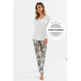 Piżama damska 417 Cana wanilia – kwiaty iron