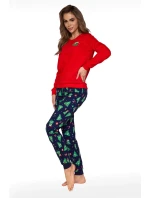 Dámské pyžamo z měkké bavlny, tričko s dlouhými rukávy a jemným potiskem na přední straně, dlouhé vzorované kalhoty s výstřihem, manžetami a spodním lemem s pohodlnou šňůrkou v pase. Pyžamo je baleno v krabici.