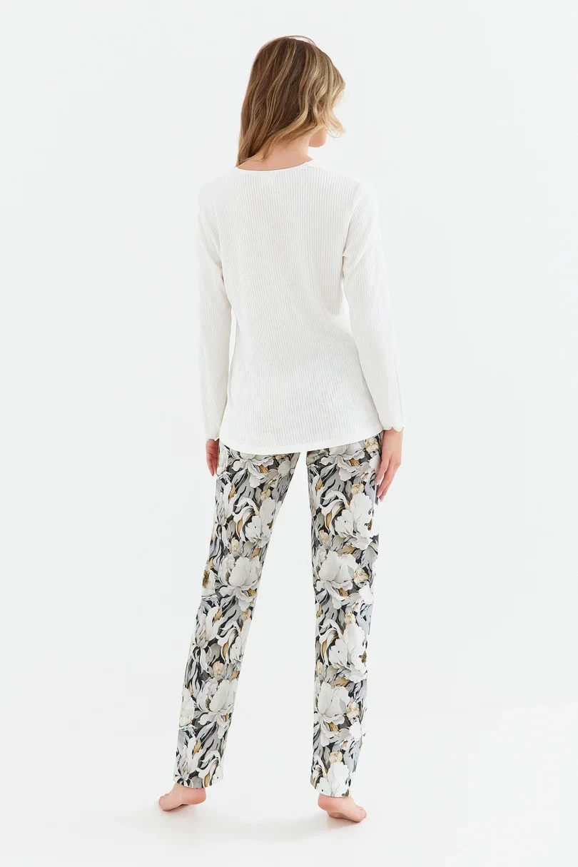 Piżama damska 417 Cana wanilia – kwiaty iron