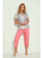 Dámské pyžamo s krátkými rukávy z jemné bavlny, s průsvitnou halenkou a srdíčkovým výstřihem a pevnými kalhotami ve 3/4 délce.