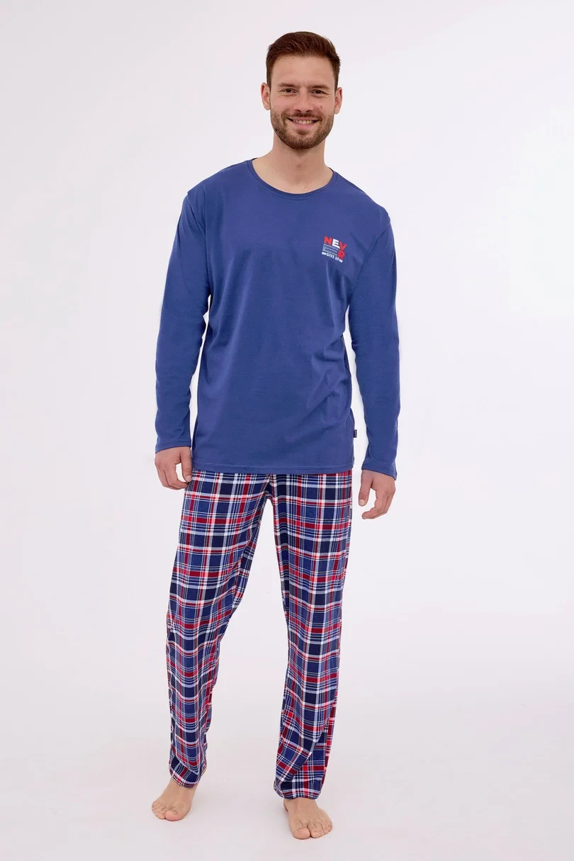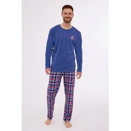 Pánské pyžamo z kvalitní měkké bavlny. Tričko s dlouhými rukávy, jemný potisk na hrudi. Součástí jsou dlouhé kostkované kalhoty. Baleno v krabici.
