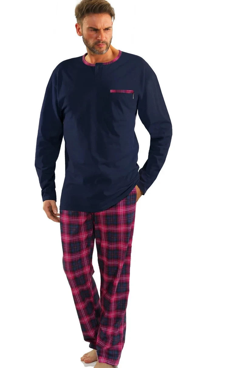 Pánské bavlněné pyžamo. Tričko s dlouhým rukávem k dlouhým kalhotám.