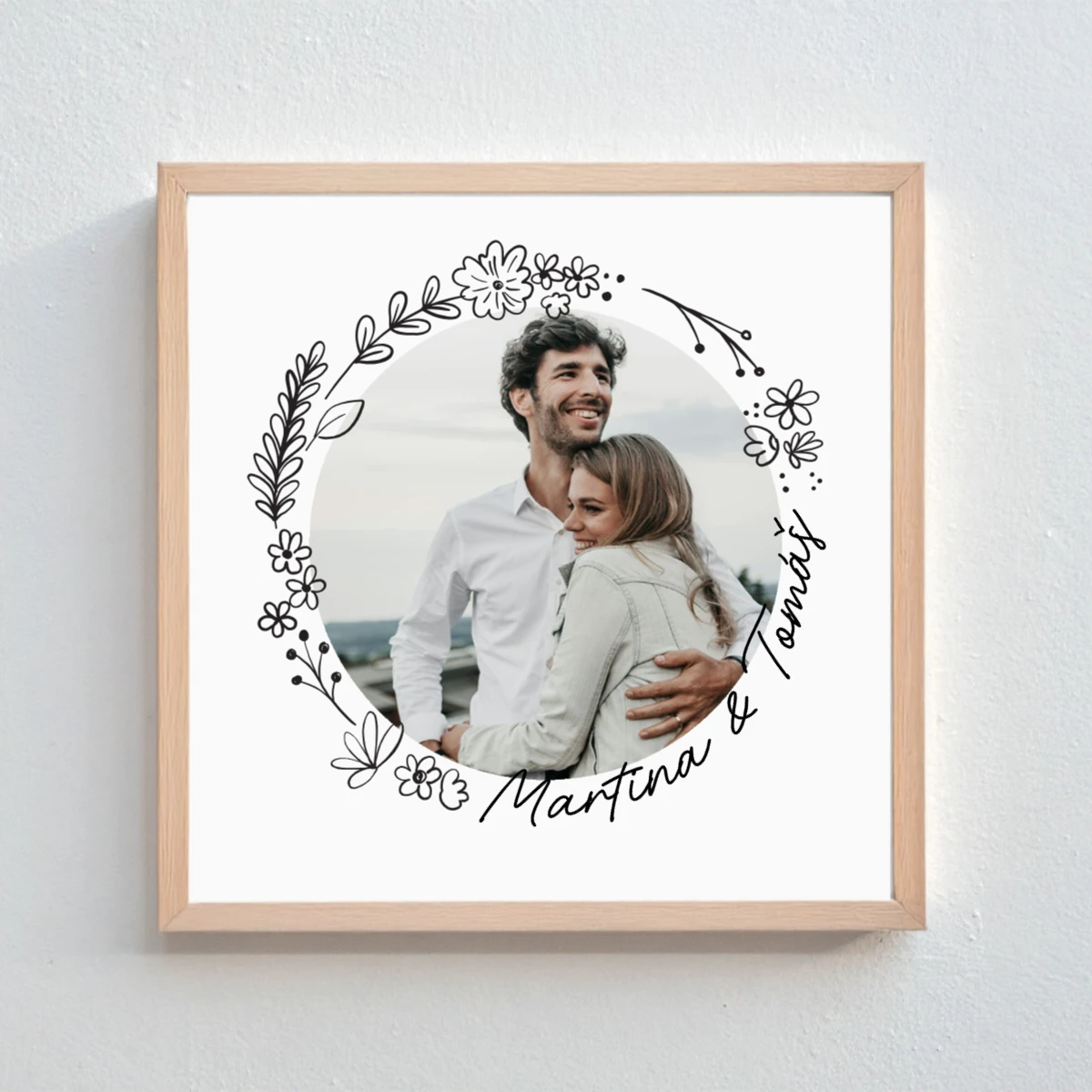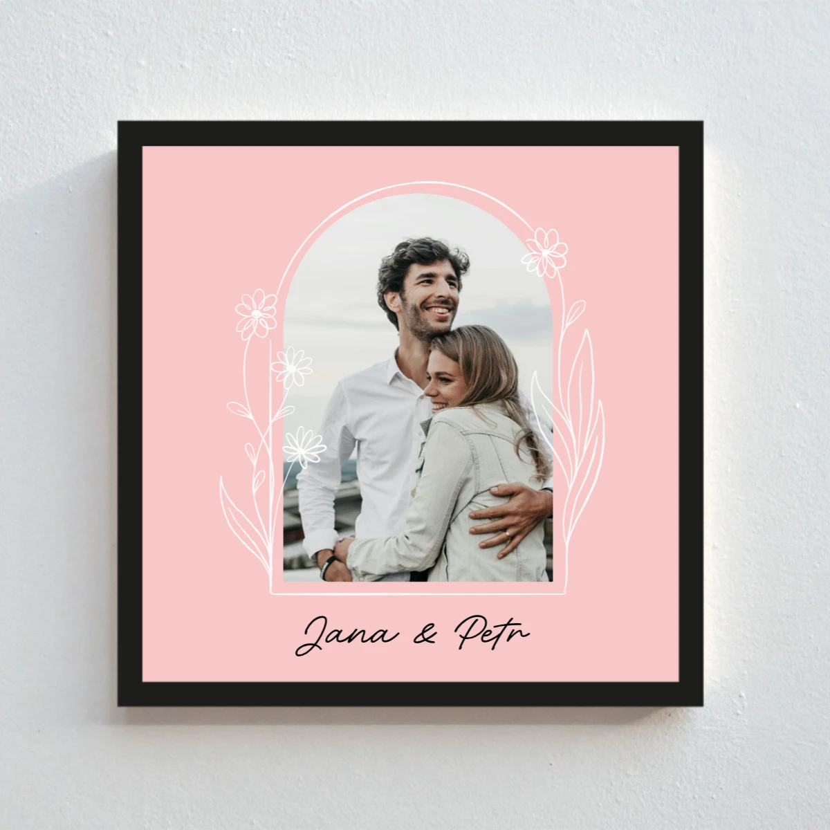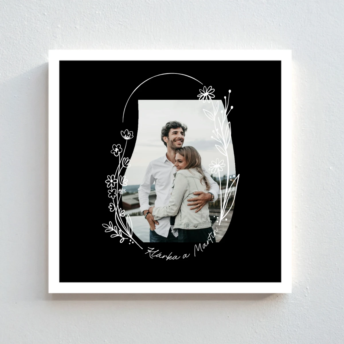 Stačí nahrát vlastní fotografii a doladit ji podle svého vkusu. Vyberte si jemné květinové ohraničení fotografie – kruh, oblouk nebo asymetrický tvar, zvolte barvu pozadí a přidejte vlastní text (jméno, datum, citát nebo krátký vzkaz). Výsledkem je originální kousek, který vypráví Váš příběh.